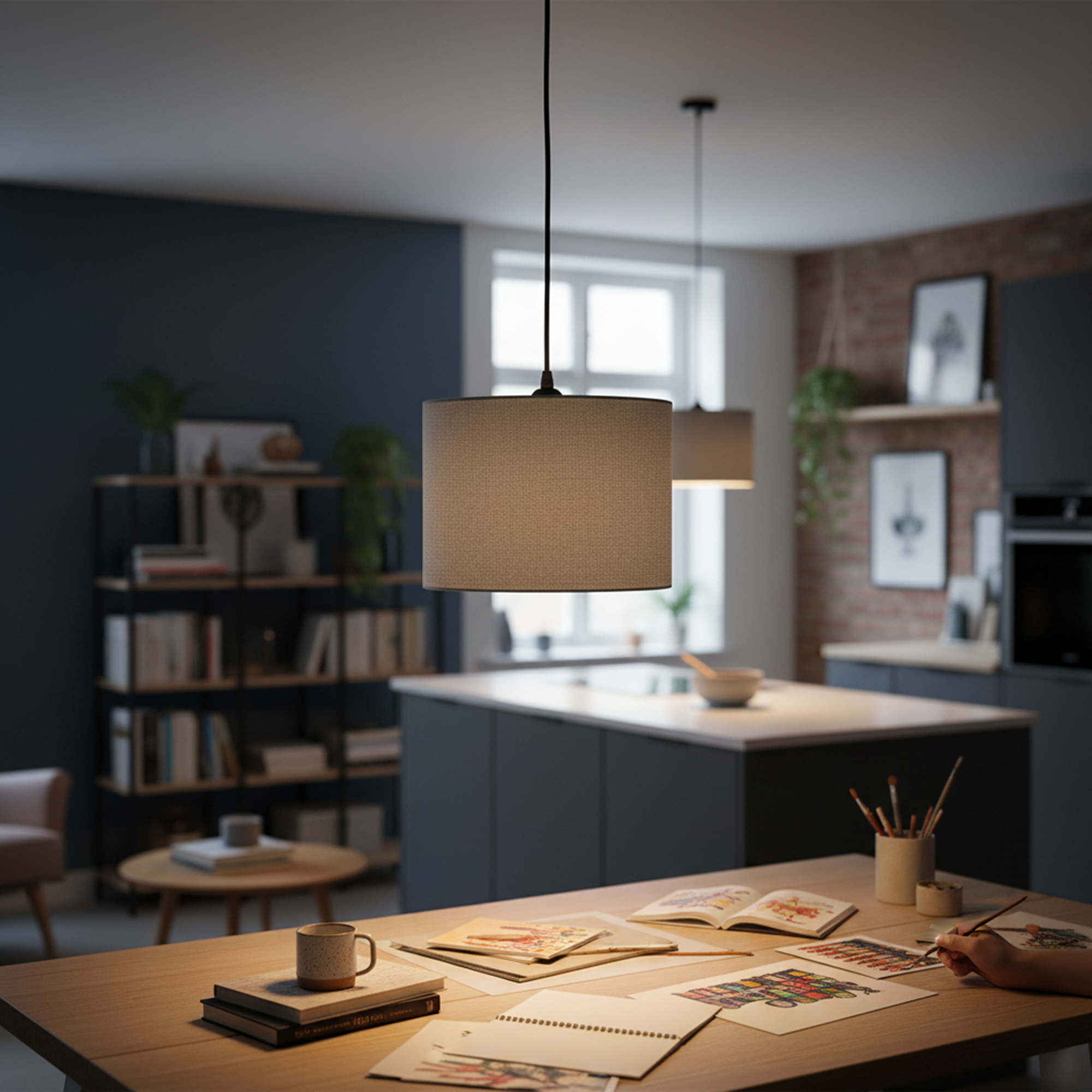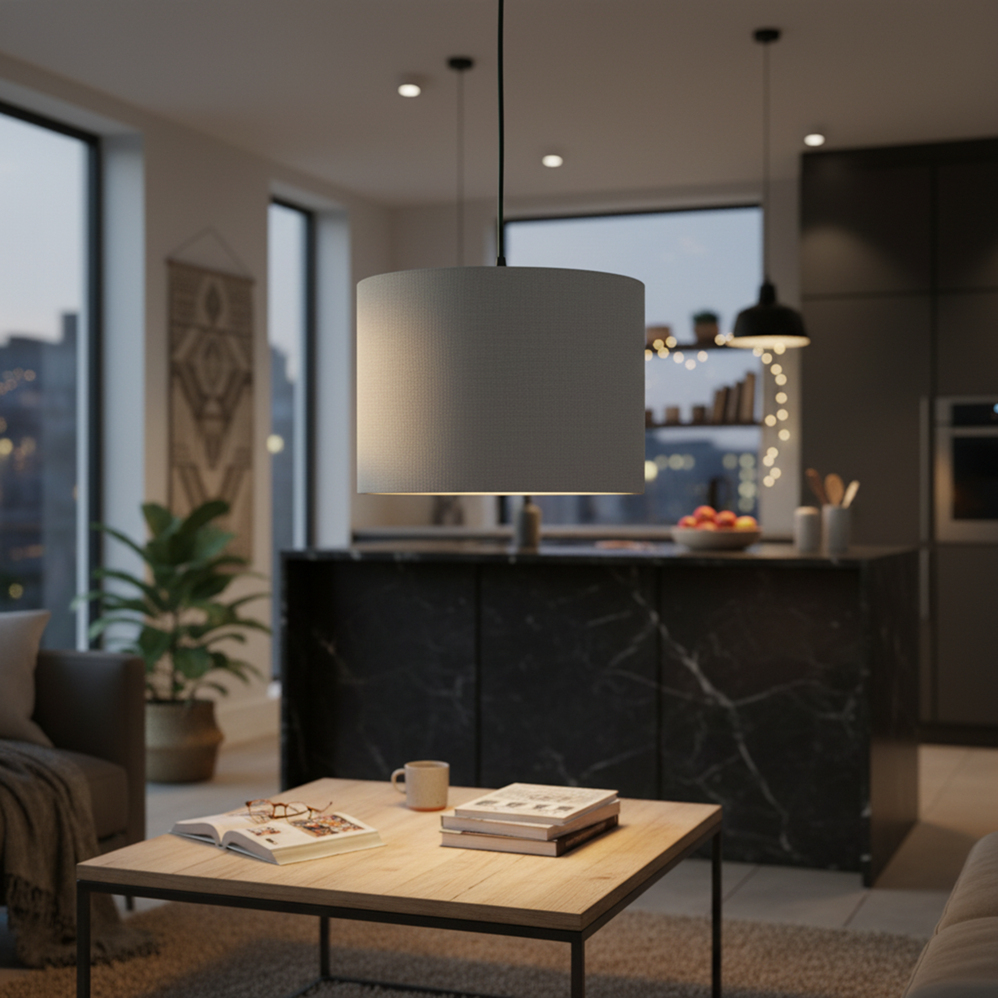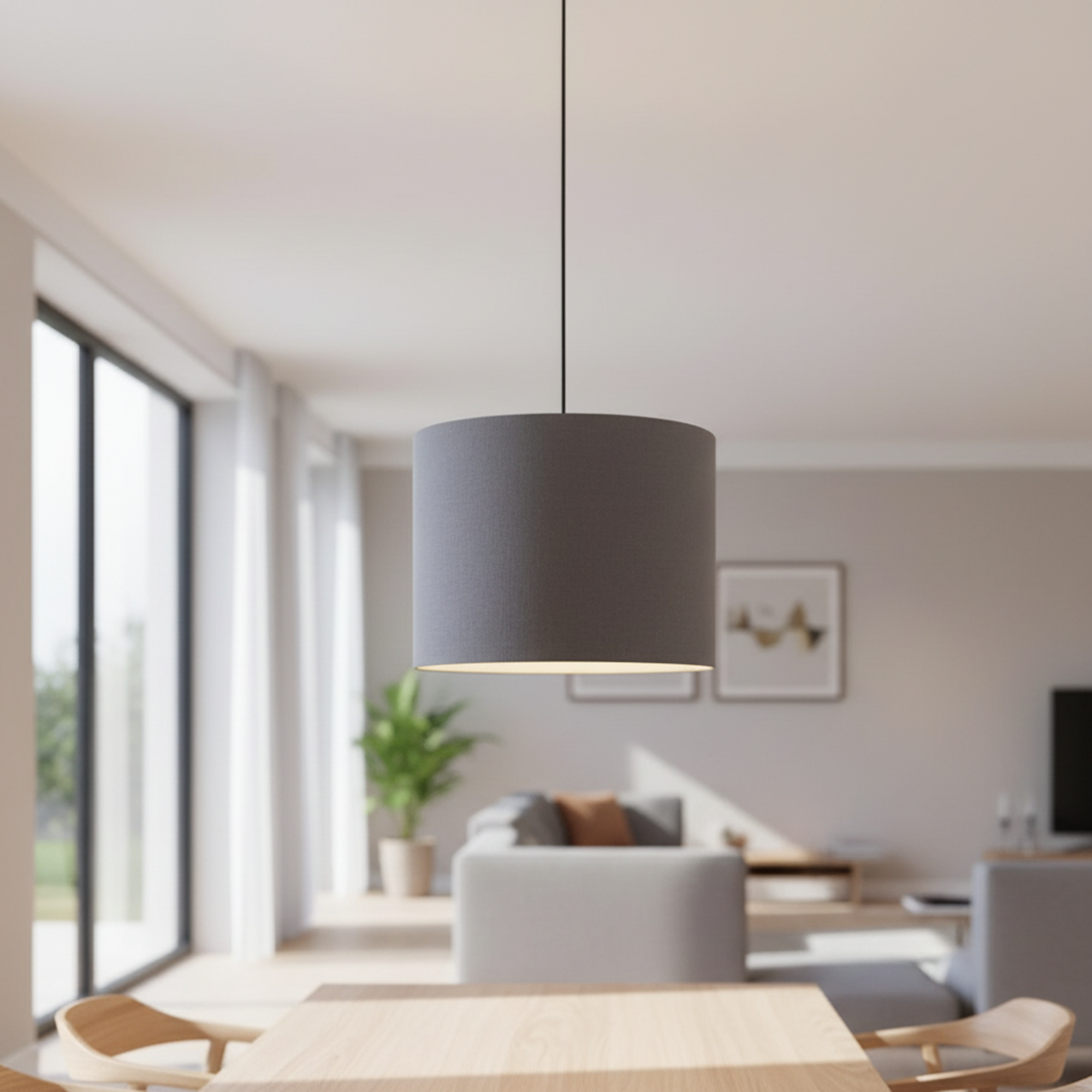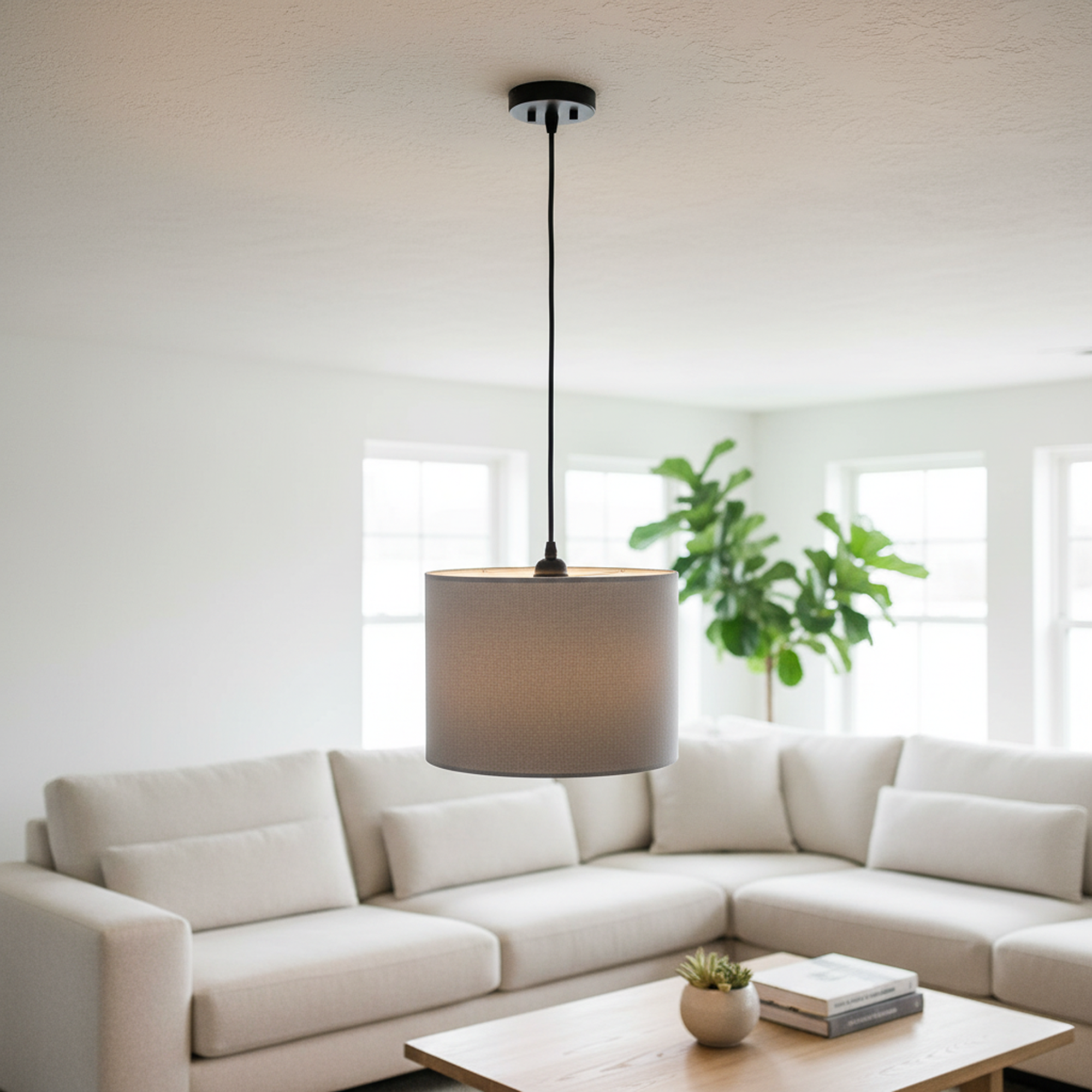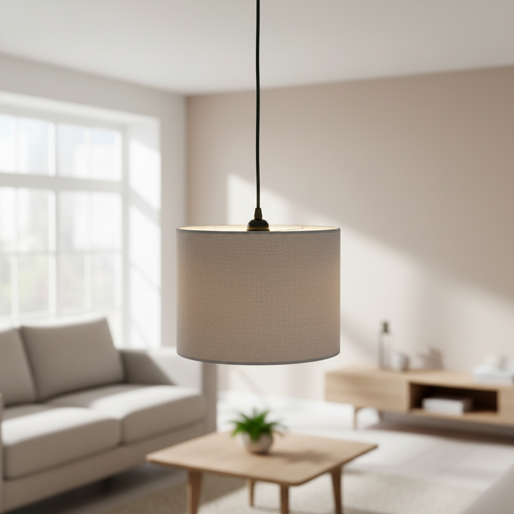 Enhance your home with the warm elegance of this modern fabric pendant light. Designed with a sleek drum shade and minimalist aesthetic, this hanging lamp delivers soft, diffused lighting that creates a cozy and inviting atmosphere. Perfect for reading corners, bedrooms, living rooms, or dining spaces, it blends seamlessly with contemporary, Scandinavian, and minimalist interiors.