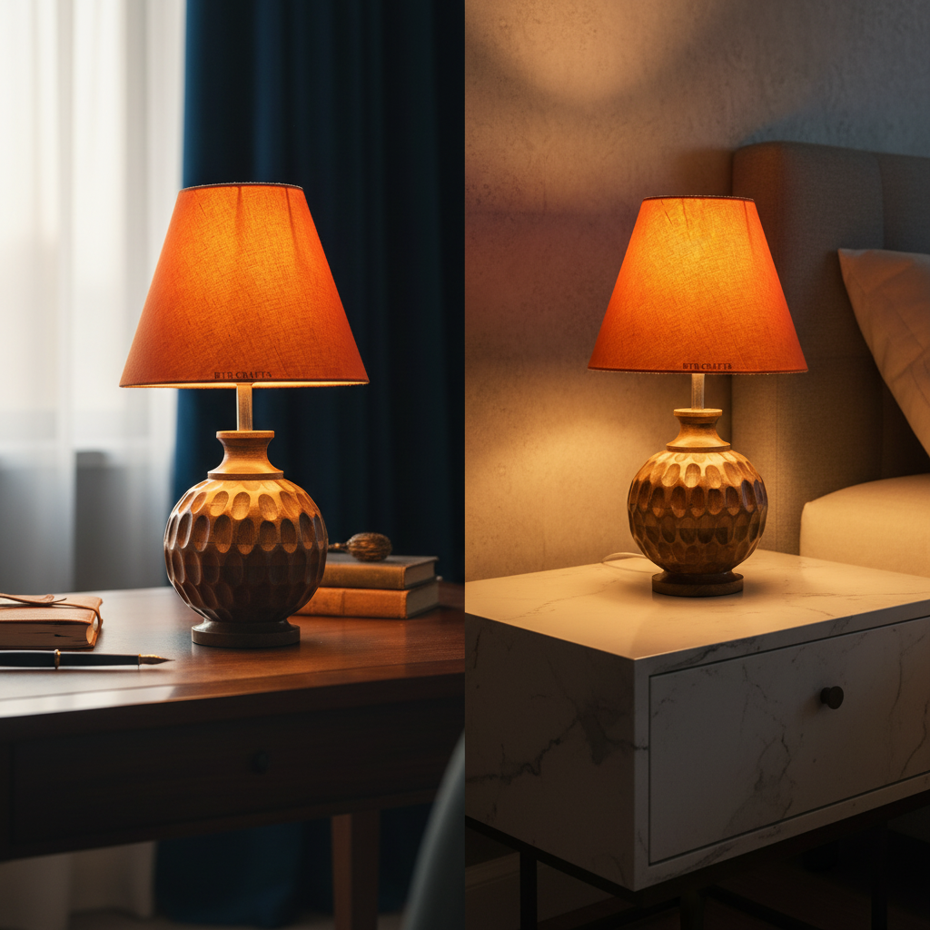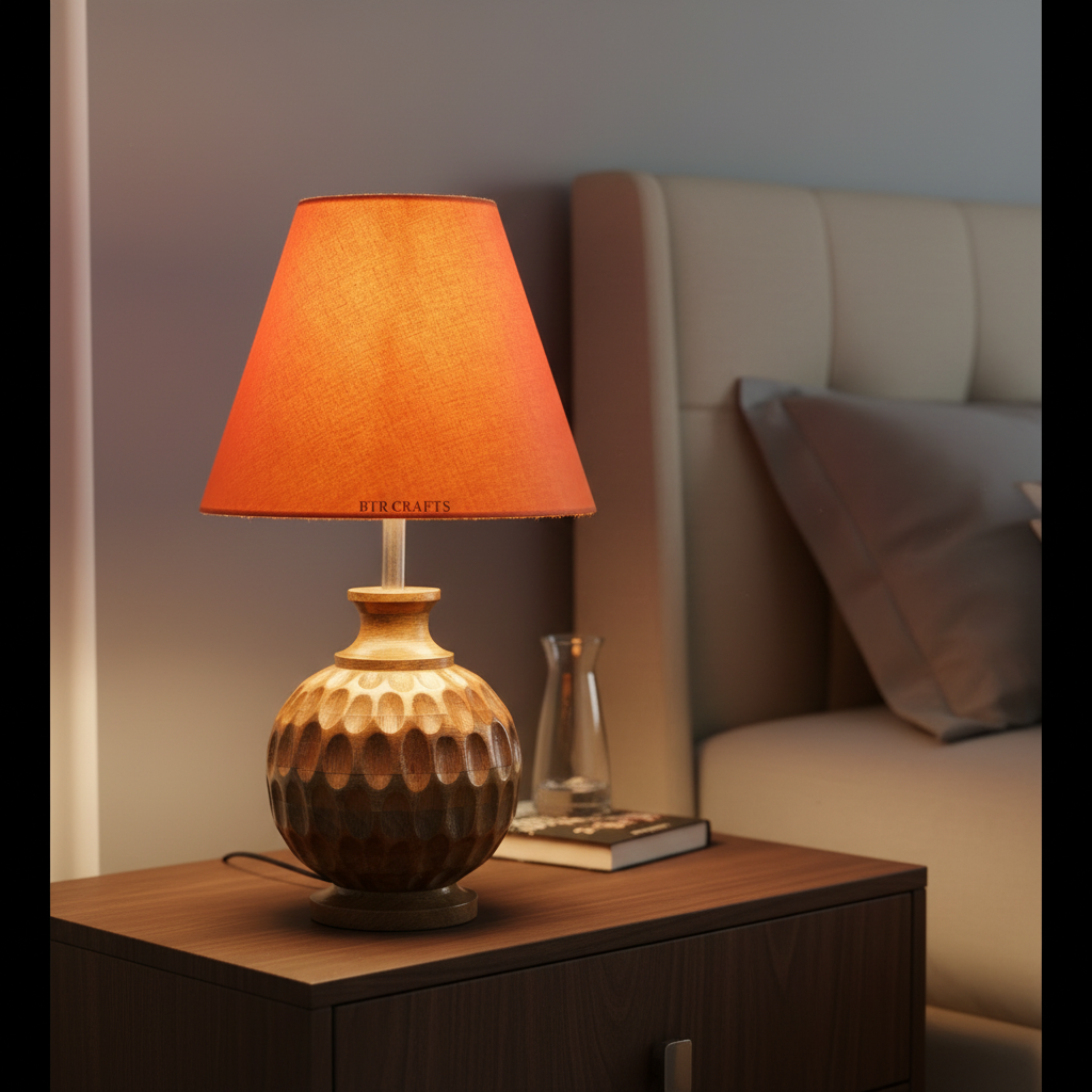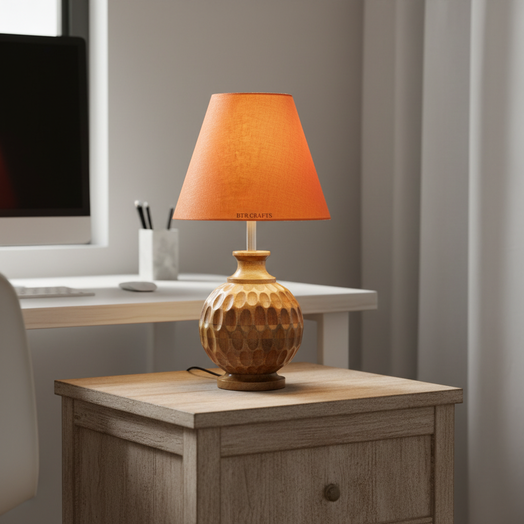 Artisan Carved Wood Table Lamp – Elegant Bedroom & Living Room Accent Light, Pack Of 1(Orange)