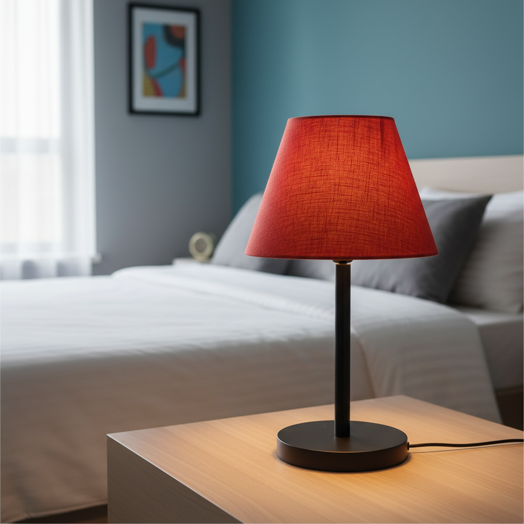 Black Bedside Lamp with Fabric Shade Minimalist Lamp for Bedroom, Living Room & Office – Warm Ambient Nightstand Light (Red Texture)