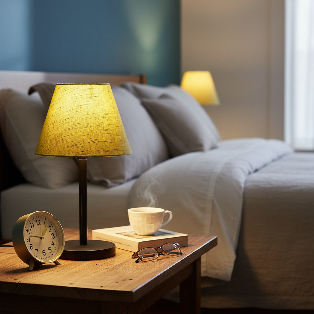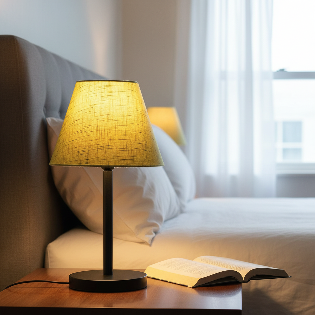Black Bedside Lamp with Fabric Shade Minimalist Lamp for Bedroom, Living Room & Office – Warm Ambient Nightstand Light(Yellow)