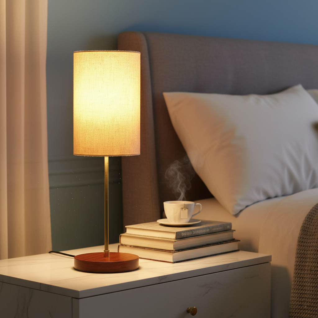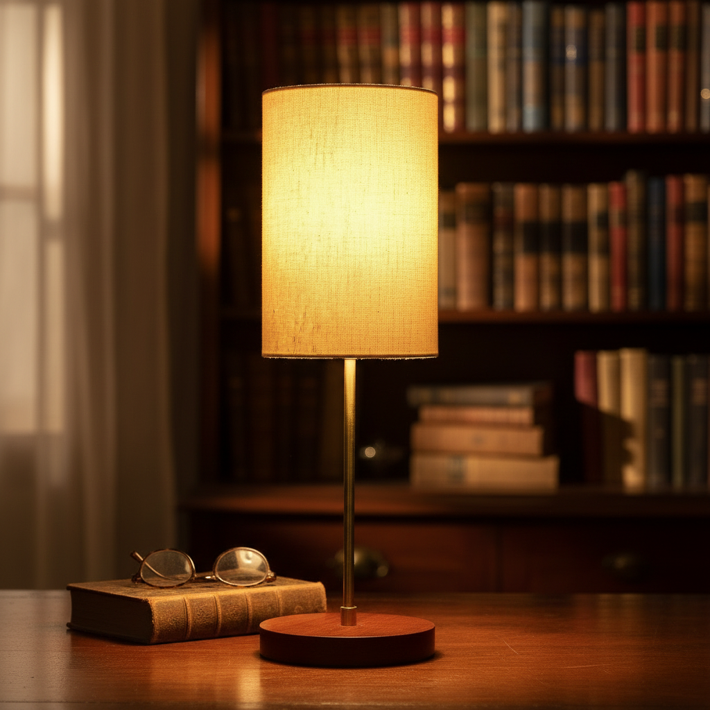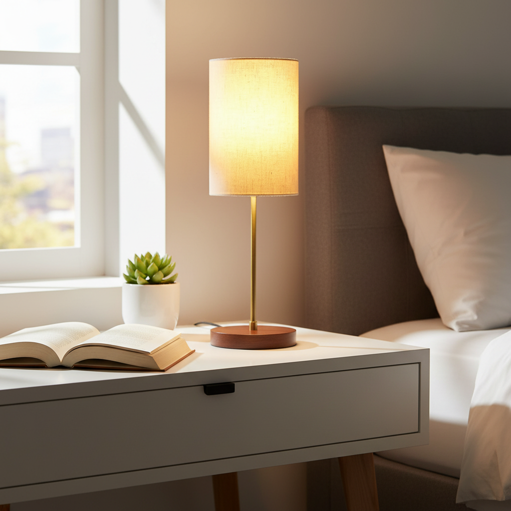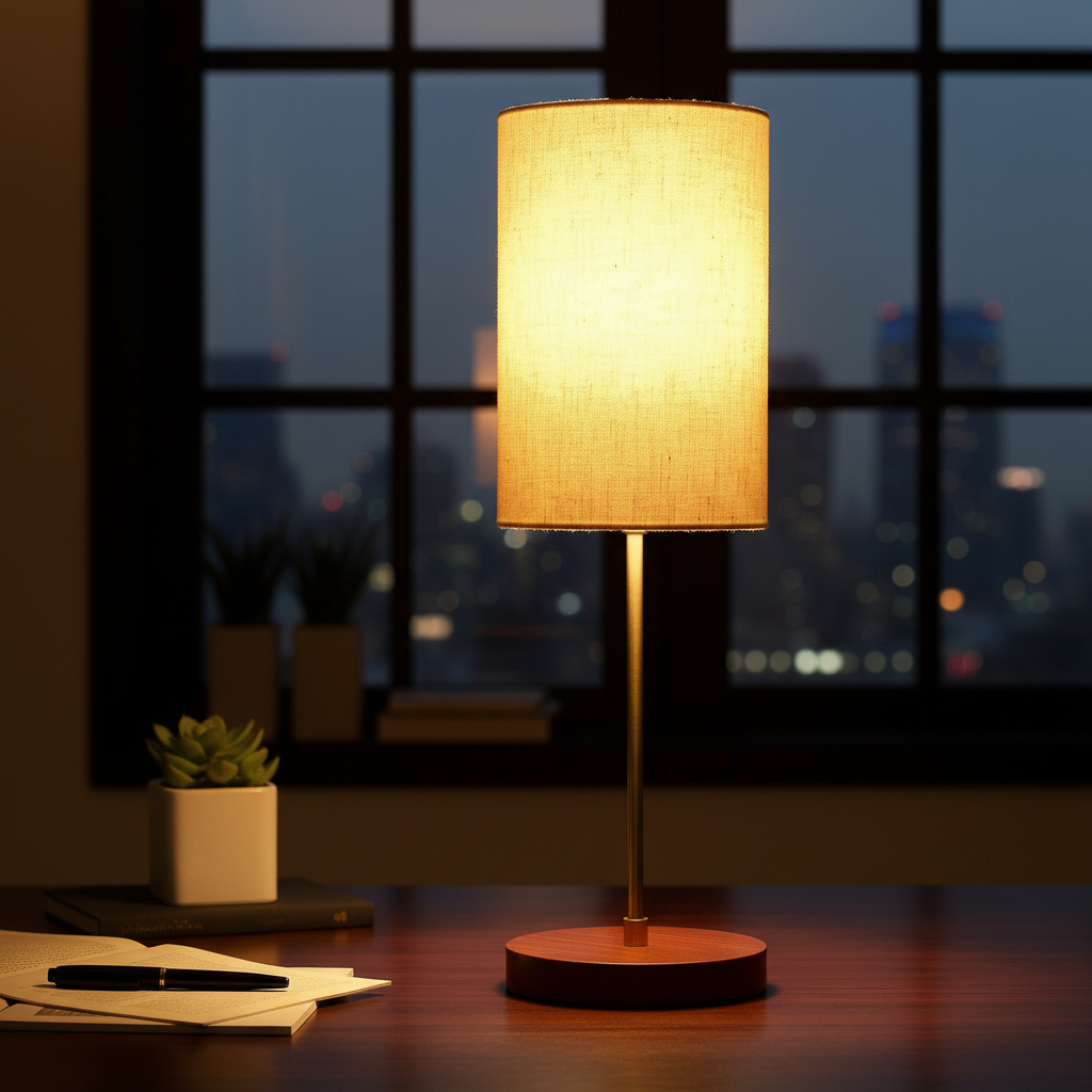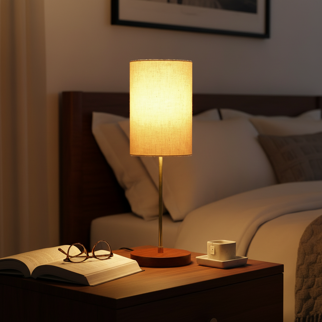 Decorative Brown Table Lamp with Cylinder Shade – Stylish Bedside & Reading Lamp for Home Décor(Flex)