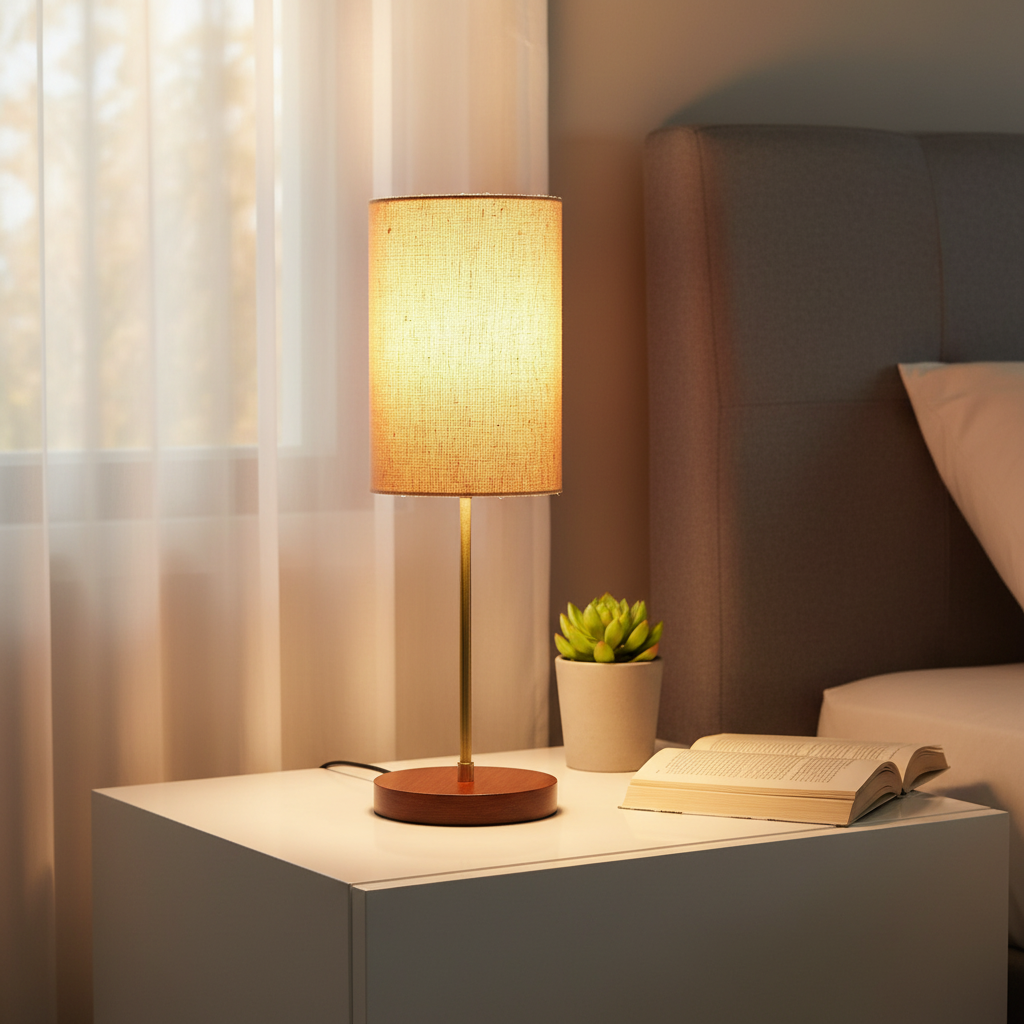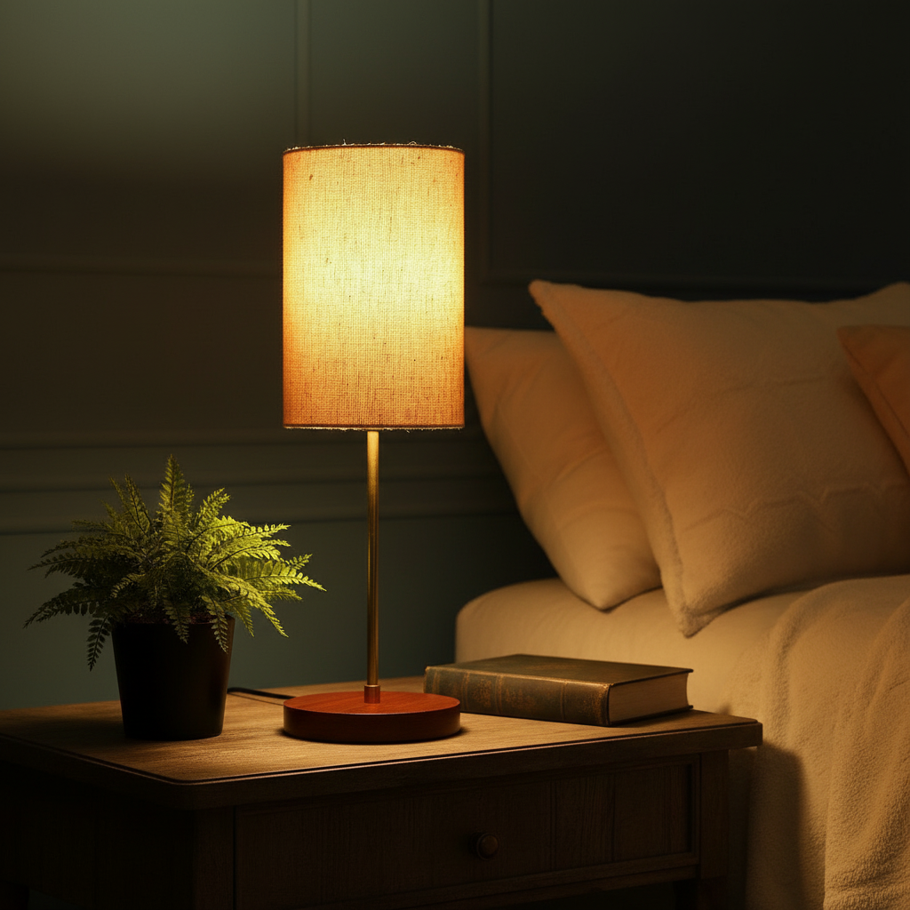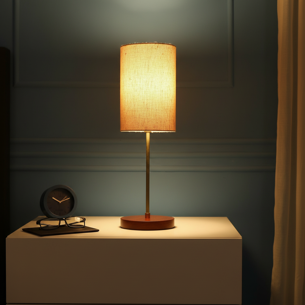 • Lamp Base – Aluminum Rod & Brown Wooden Base , Lampshade – Cotton Fabric