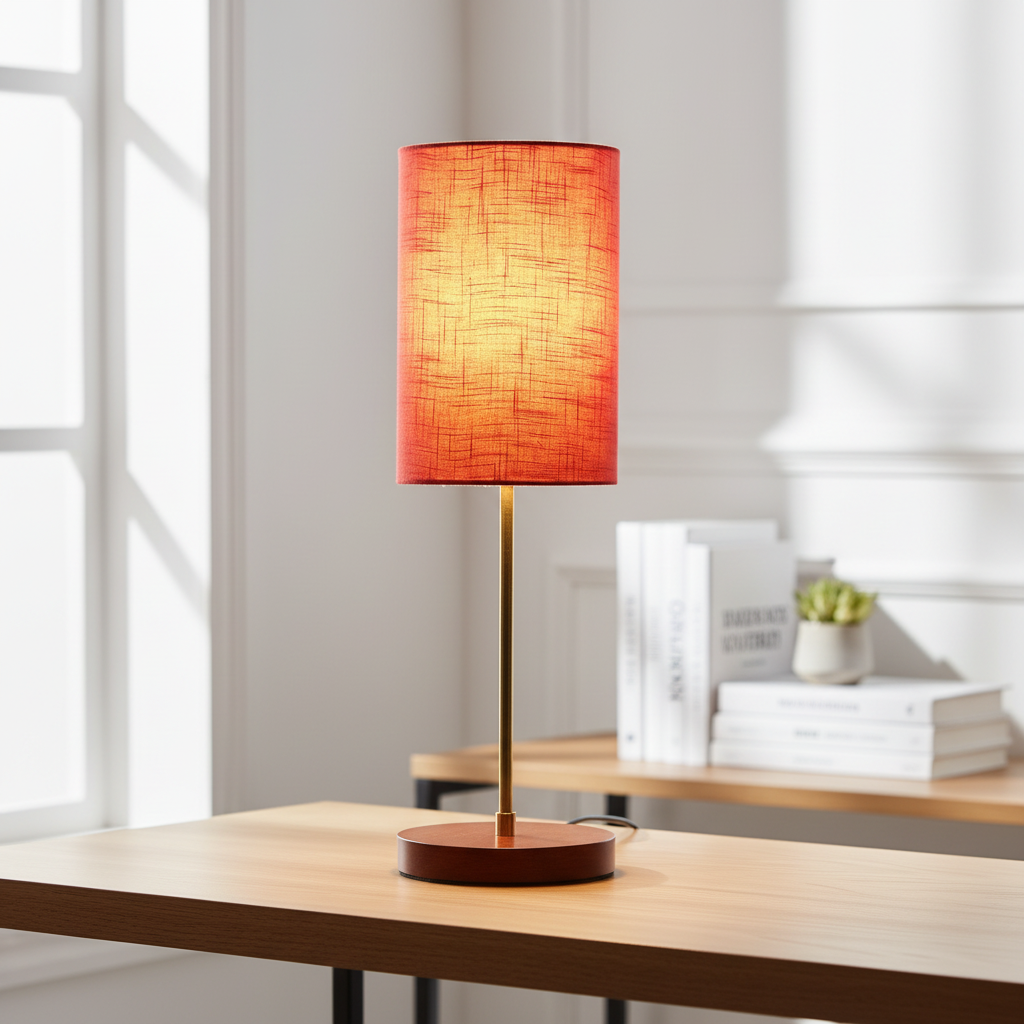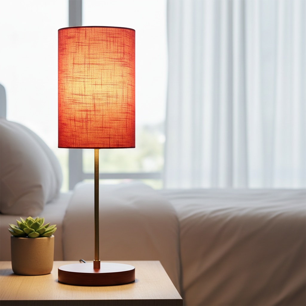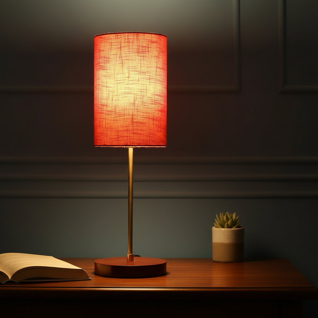 Decorative Brown Table Lamp with Cylinder Shade – Stylish Bedside & Reading Lamp for Home Décor(Red Texture)