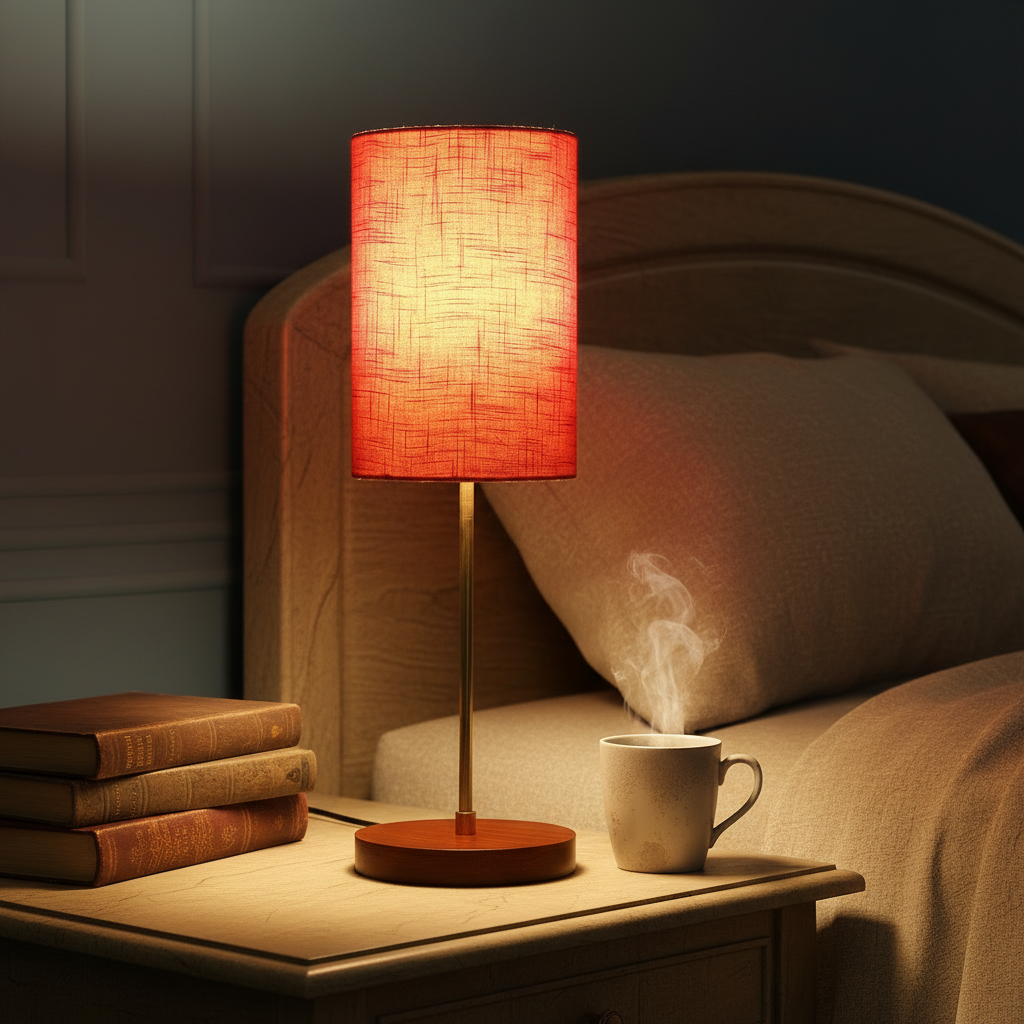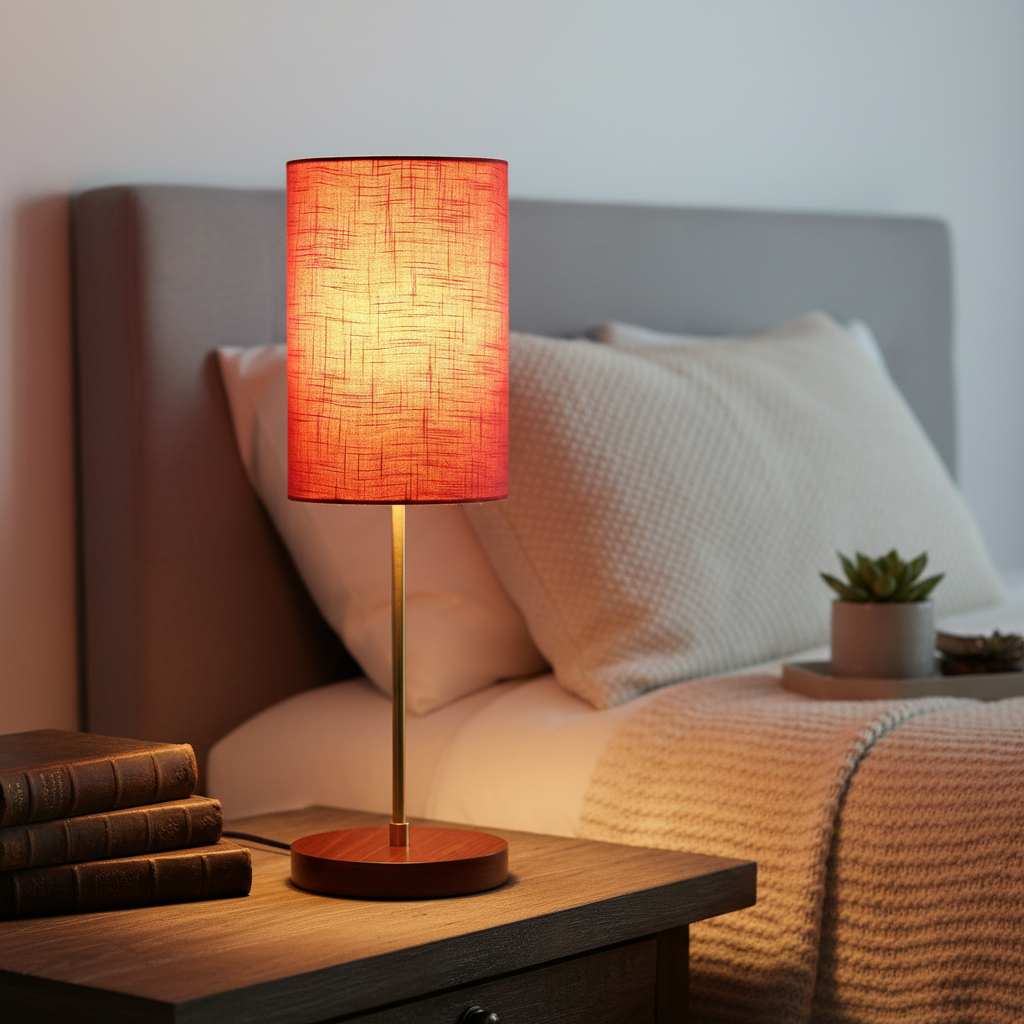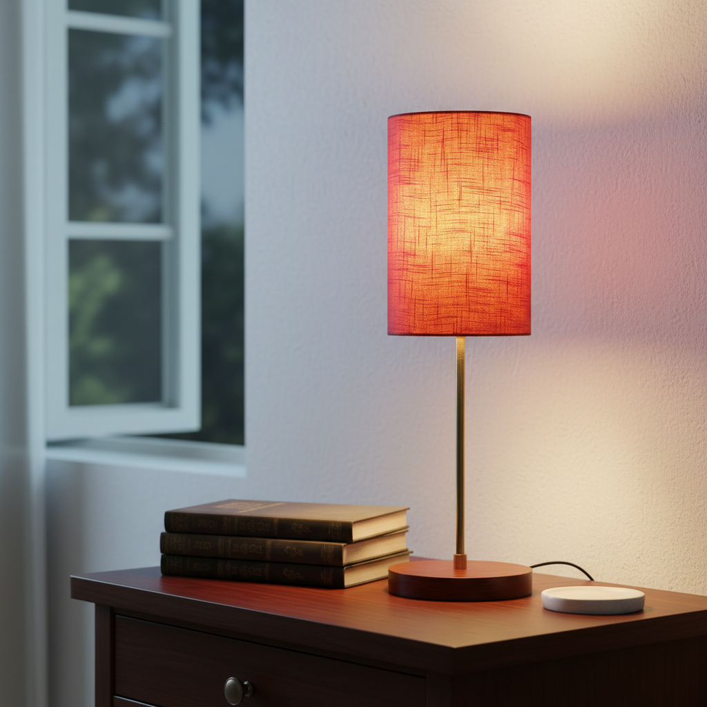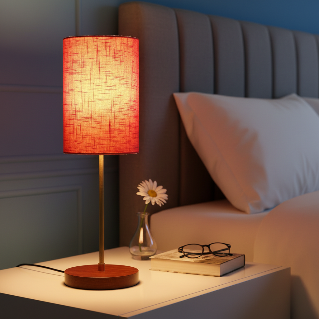 Decorative Brown Table Lamp with Cylinder Shade – Stylish Bedside & Reading Lamp for Home Décor(Red Texture)