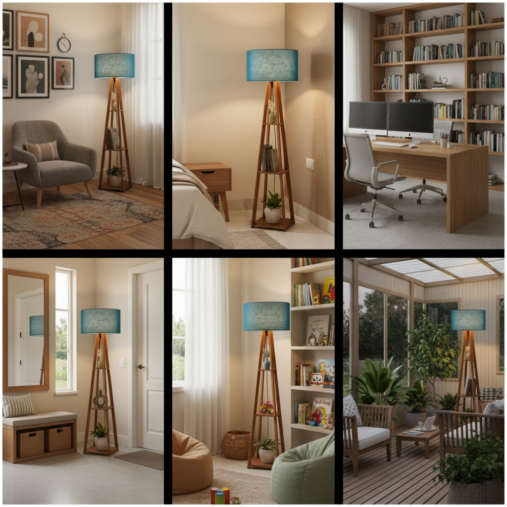 Whether positioned beside a sofa, tucked into a reading nook, or standing proud in the corner of a bedroom, the Decorative Wooden Floor Lamp with Shelves adapts effortlessly to your décor needs. Its compact yet spacious design makes it ideal for smaller spaces without compromising on style or utility. With its balanced fusion of beauty and practicality, it’s more than just a lamp—it’s an essential piece for creating a harmonious living environment.