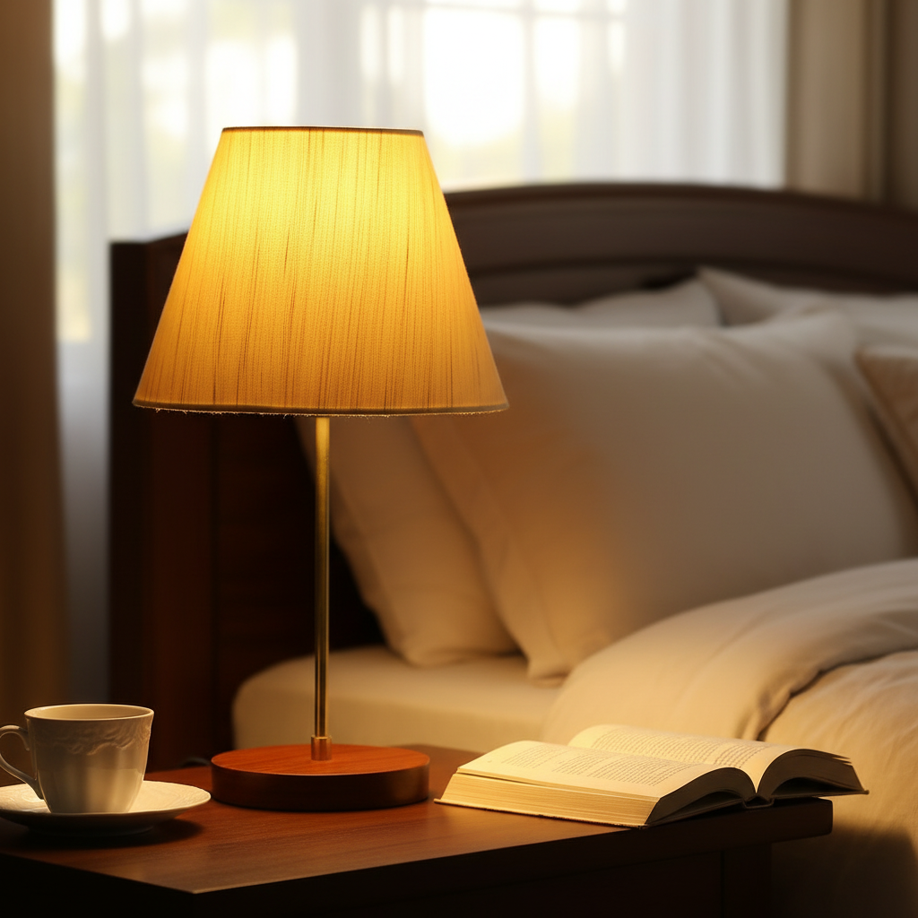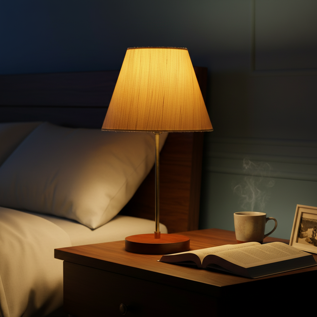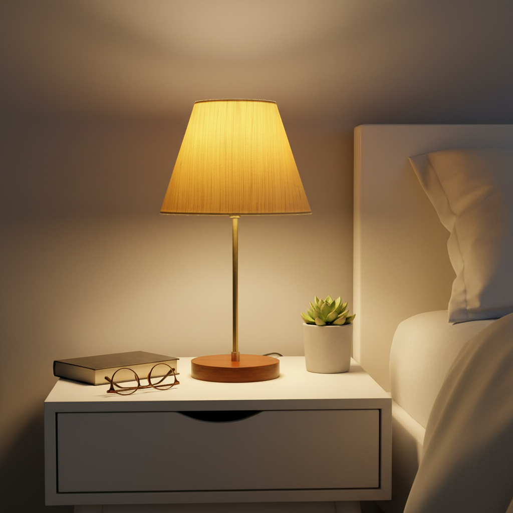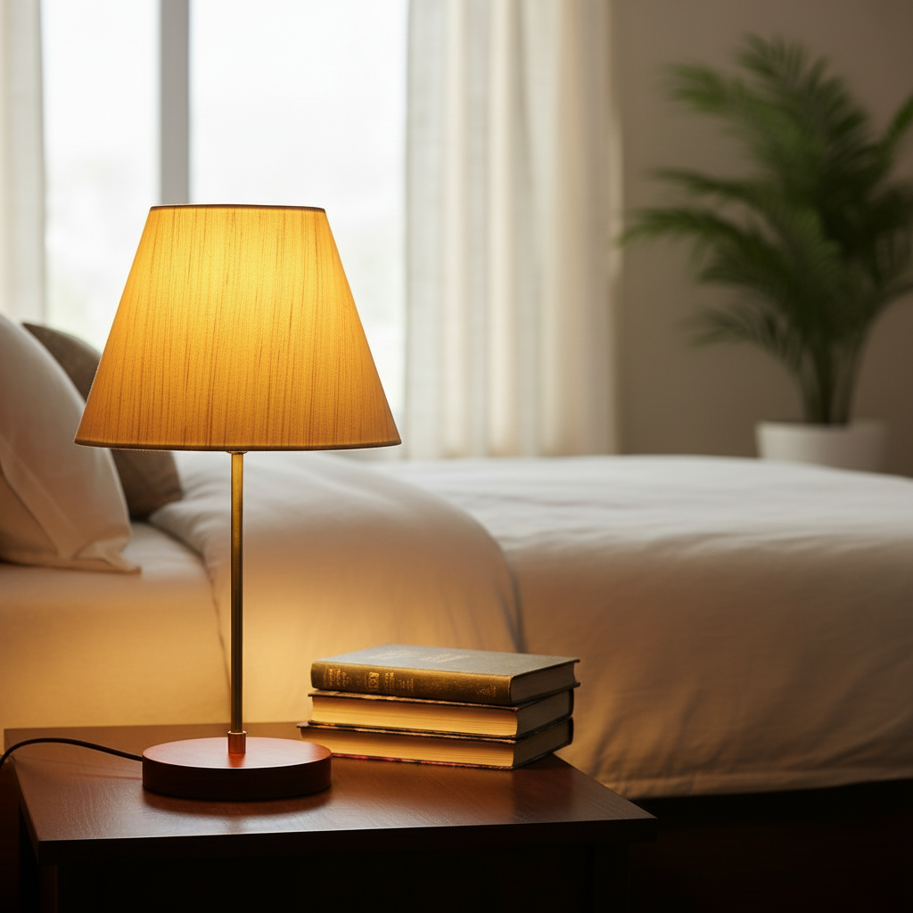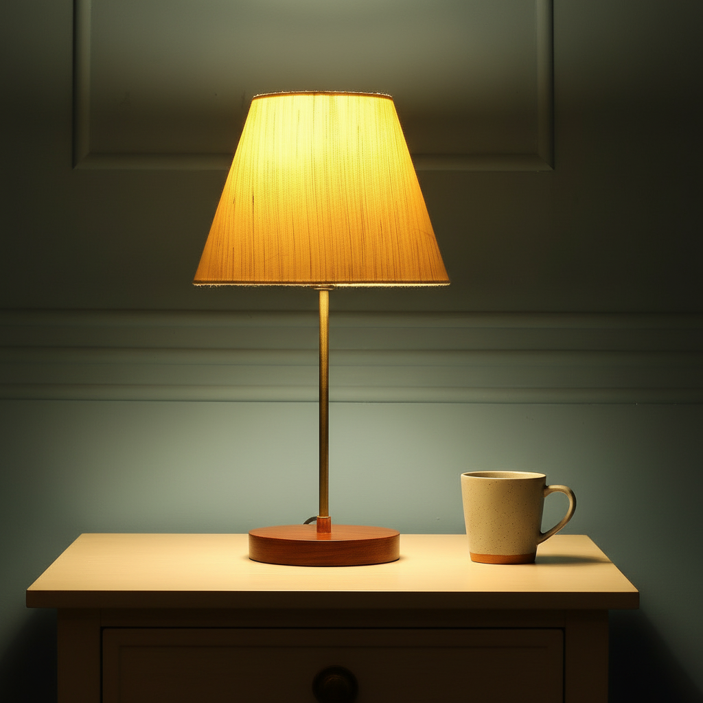 Decorative Brown Table Lamp with Conical Shade – Stylish Bedside & Reading Lamp for Home Décor(Cream Texture)
