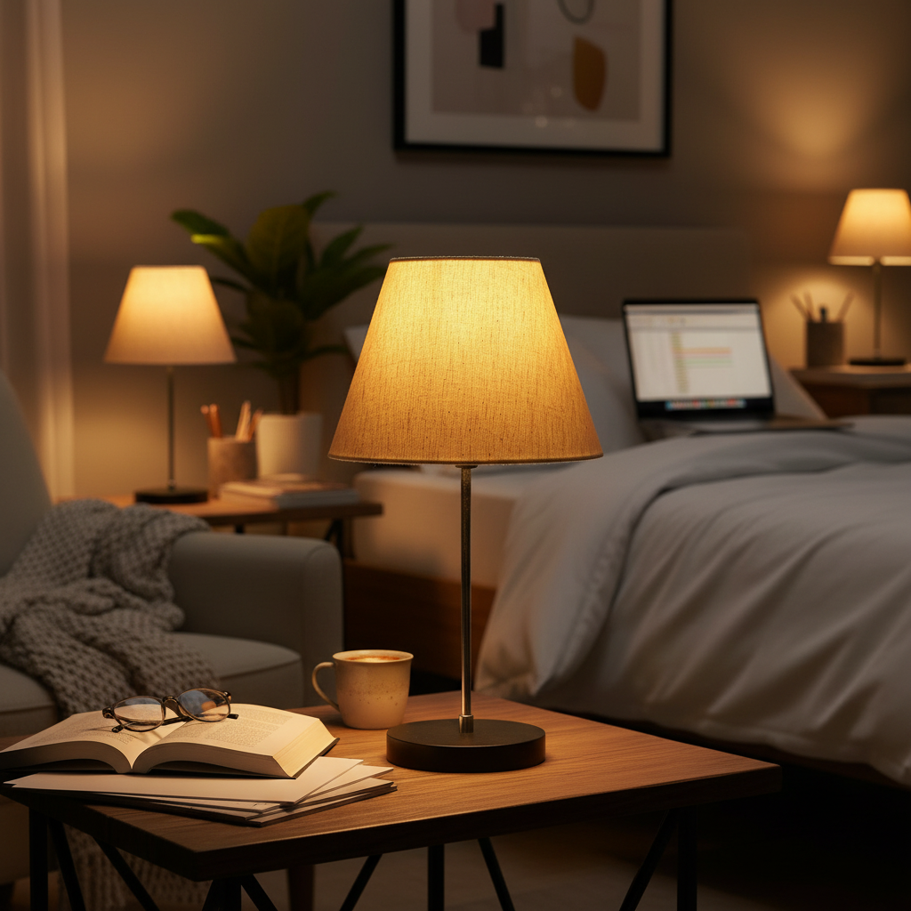Minimalist Desk Lamp with Black Round Base – Soft Warm Lighting for Living Room & Study, Pack Of 1(Flex)