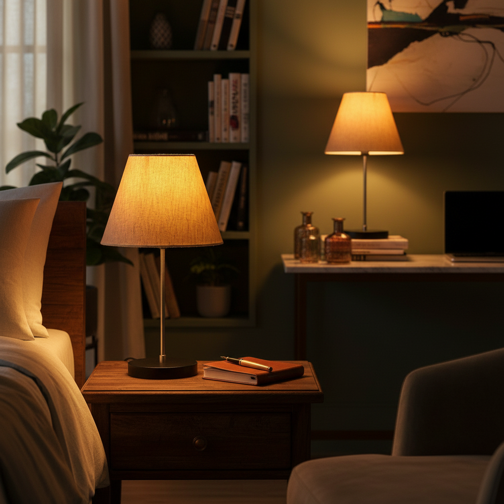 Slim Contemporary Night Lamp – Fabric Shade Accent Light for Home & Office, Pack Of 2(White)