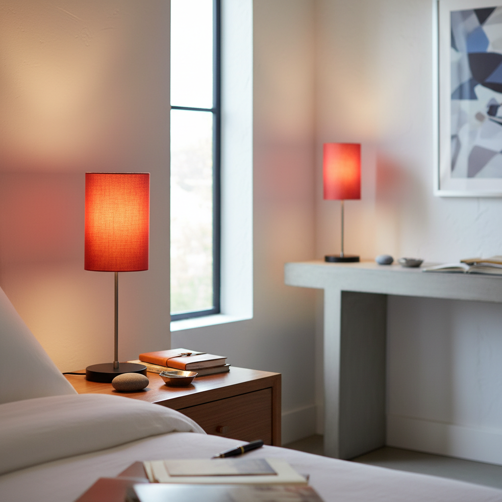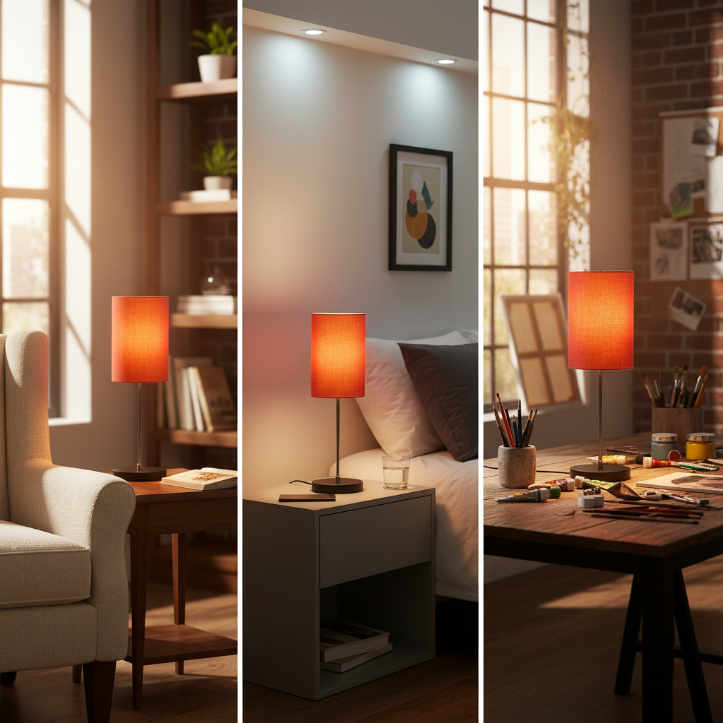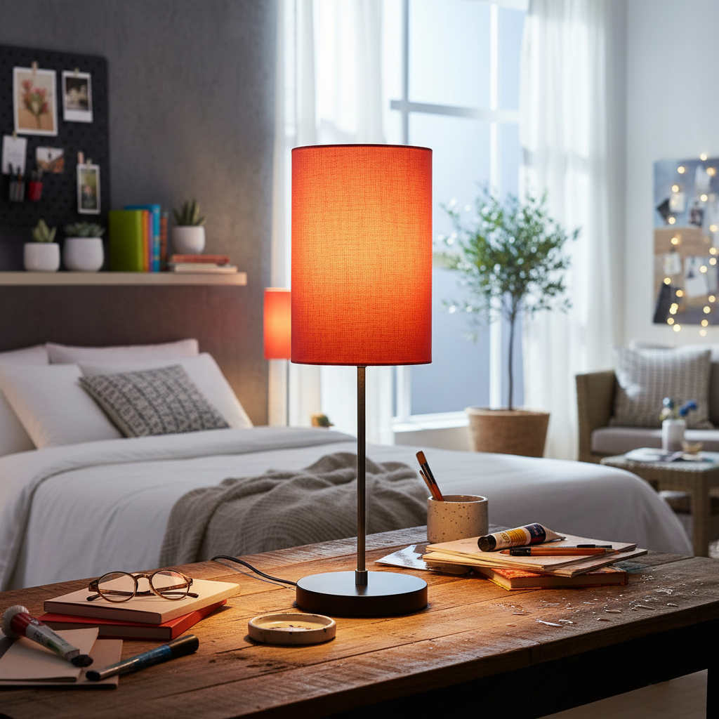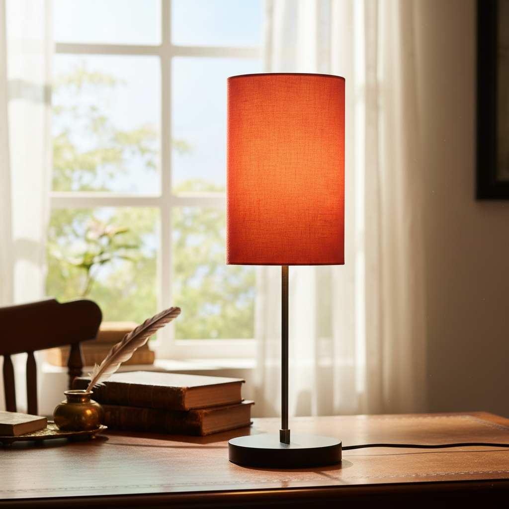 Minimalist Desk Lamp with Black Round Base – Soft Warm Lighting for Living Room & Study, Pack Of 1(Orange Cylinder)