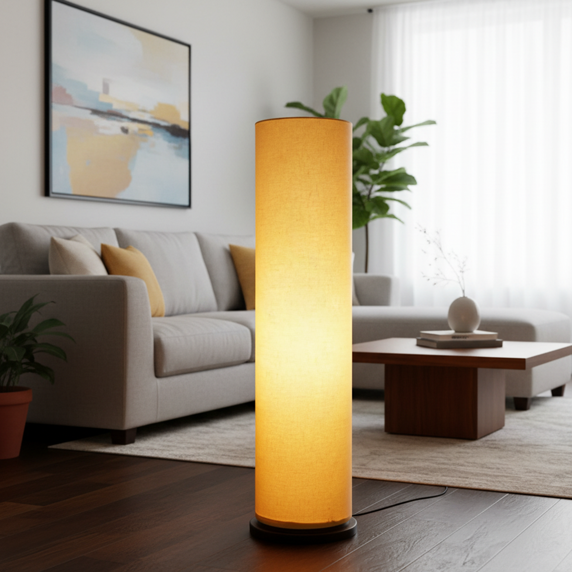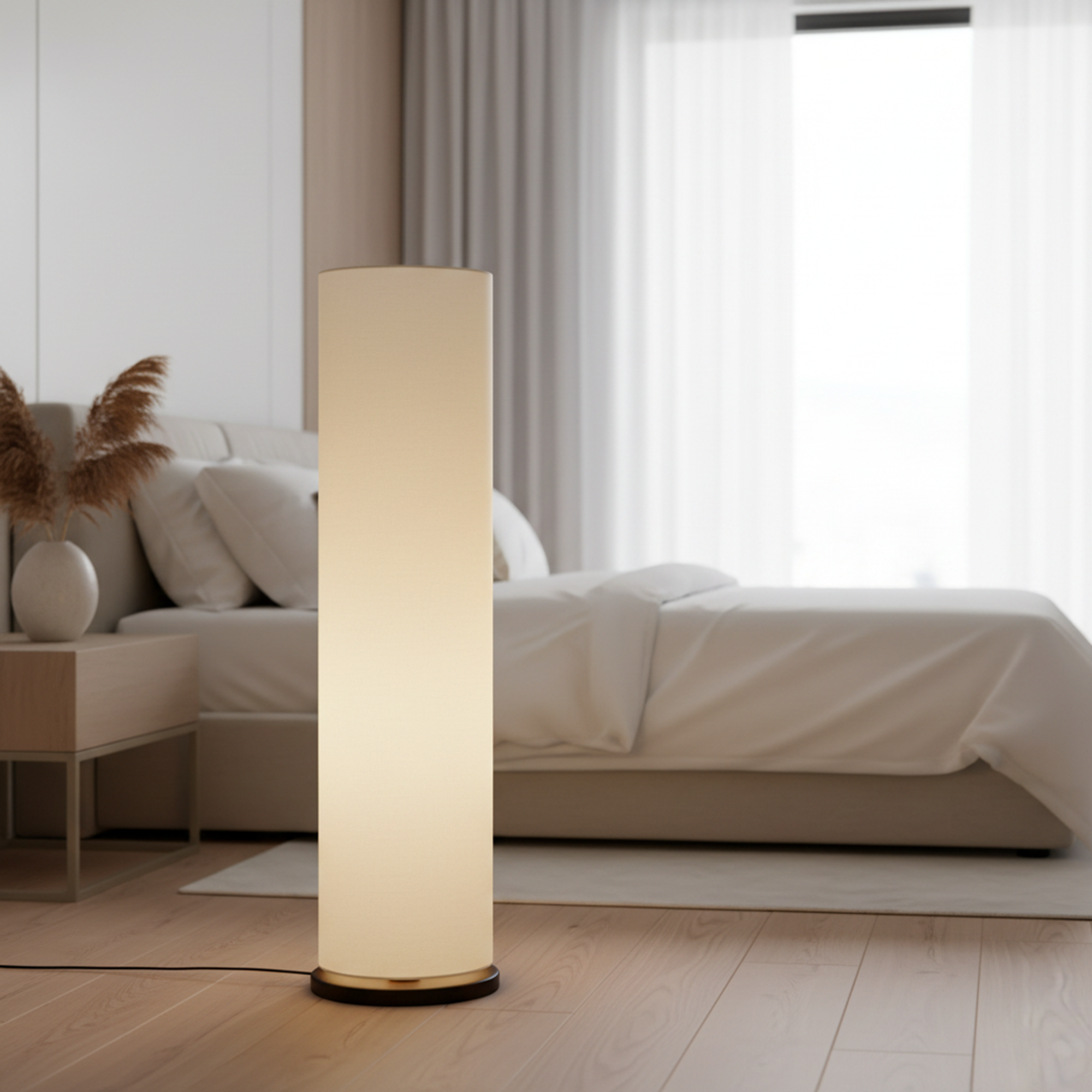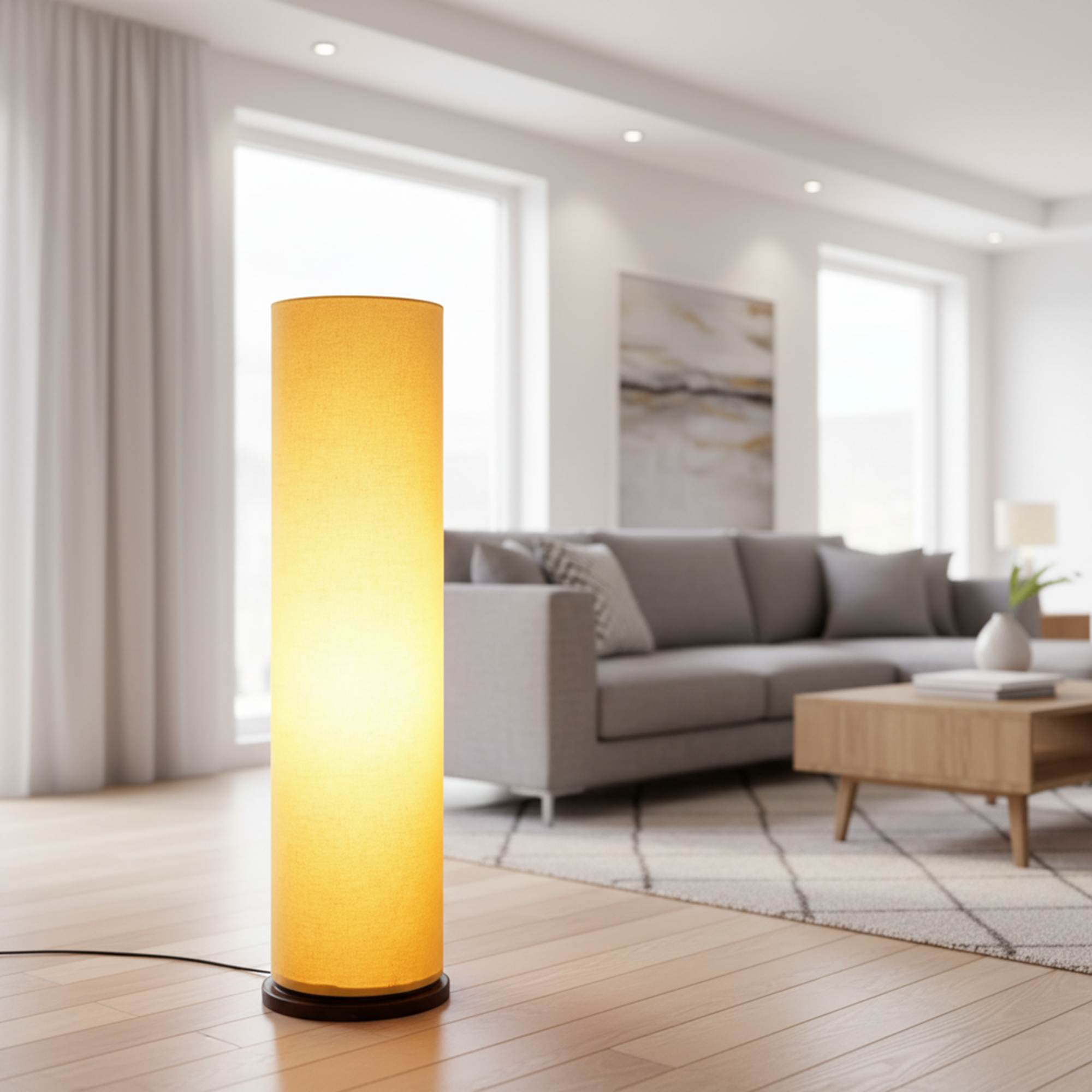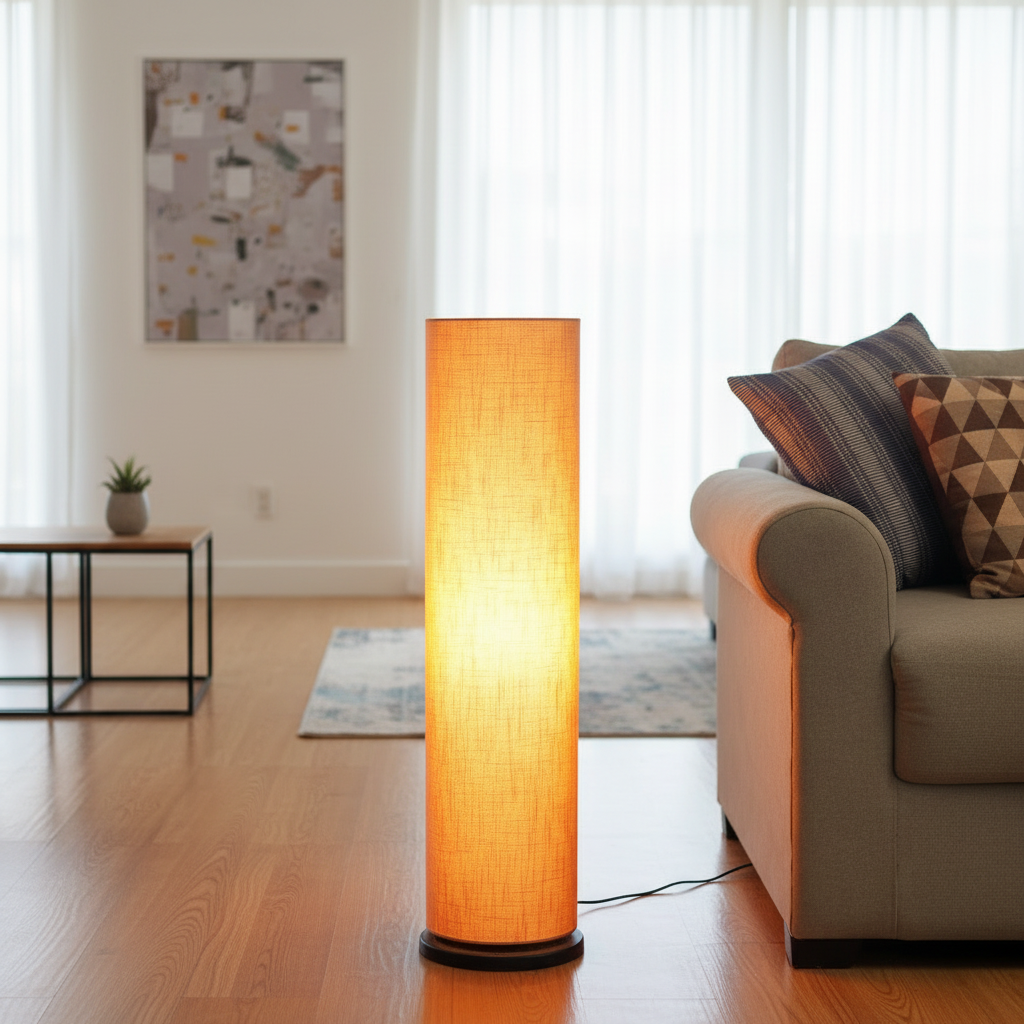 Enhance your interior décor with this elegant Modern Cylinder Floor Lamp, designed to bring warmth and sophistication to any space. Featuring a sleek tall cylindrical fabric shade and a sturdy wooden base, this standing lamp creates soft, diffused ambient lighting perfect for relaxing evenings or stylish interiors.