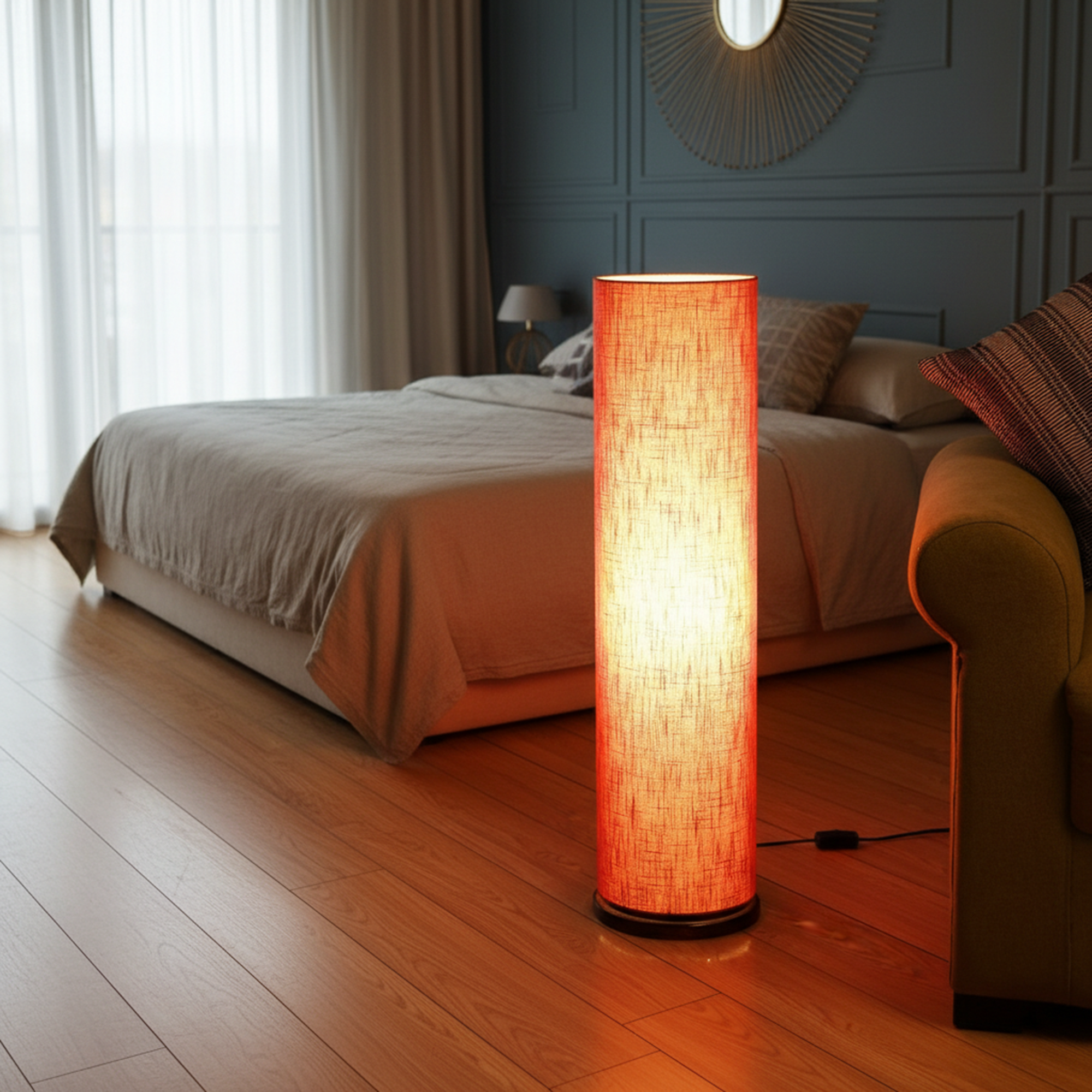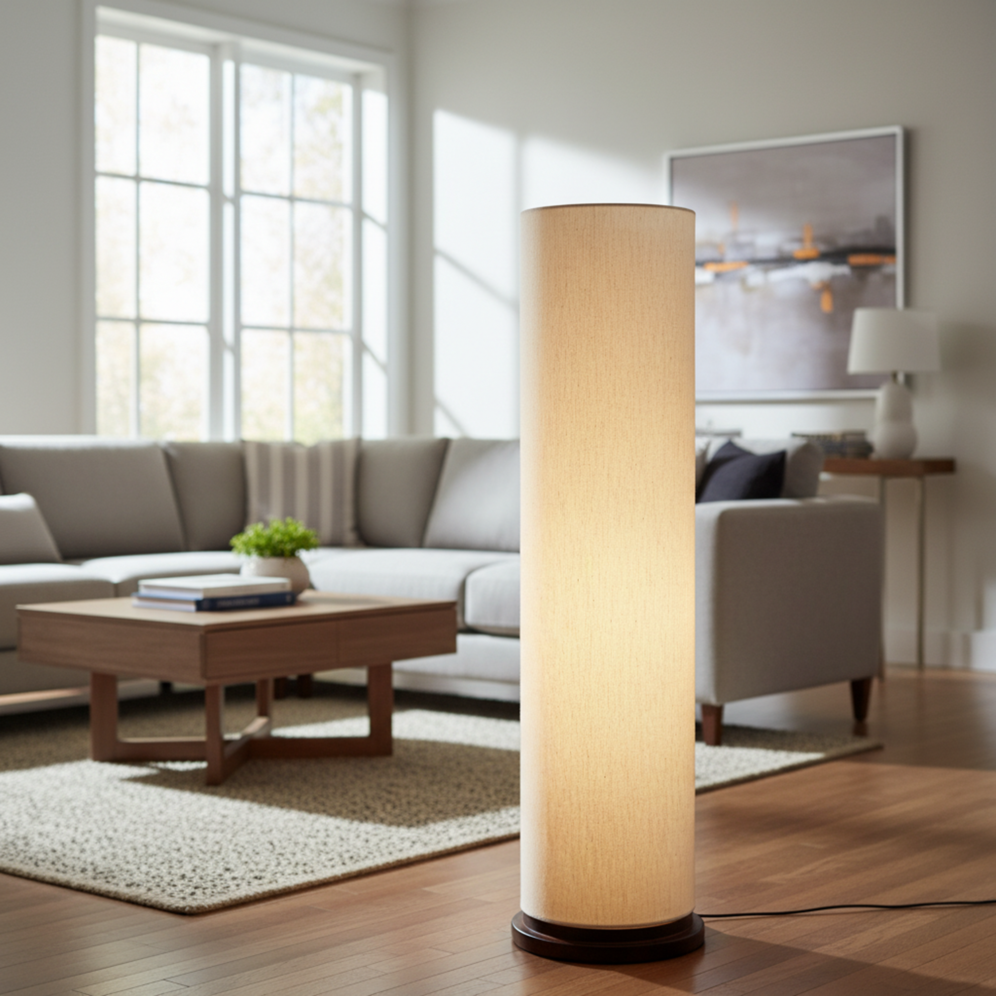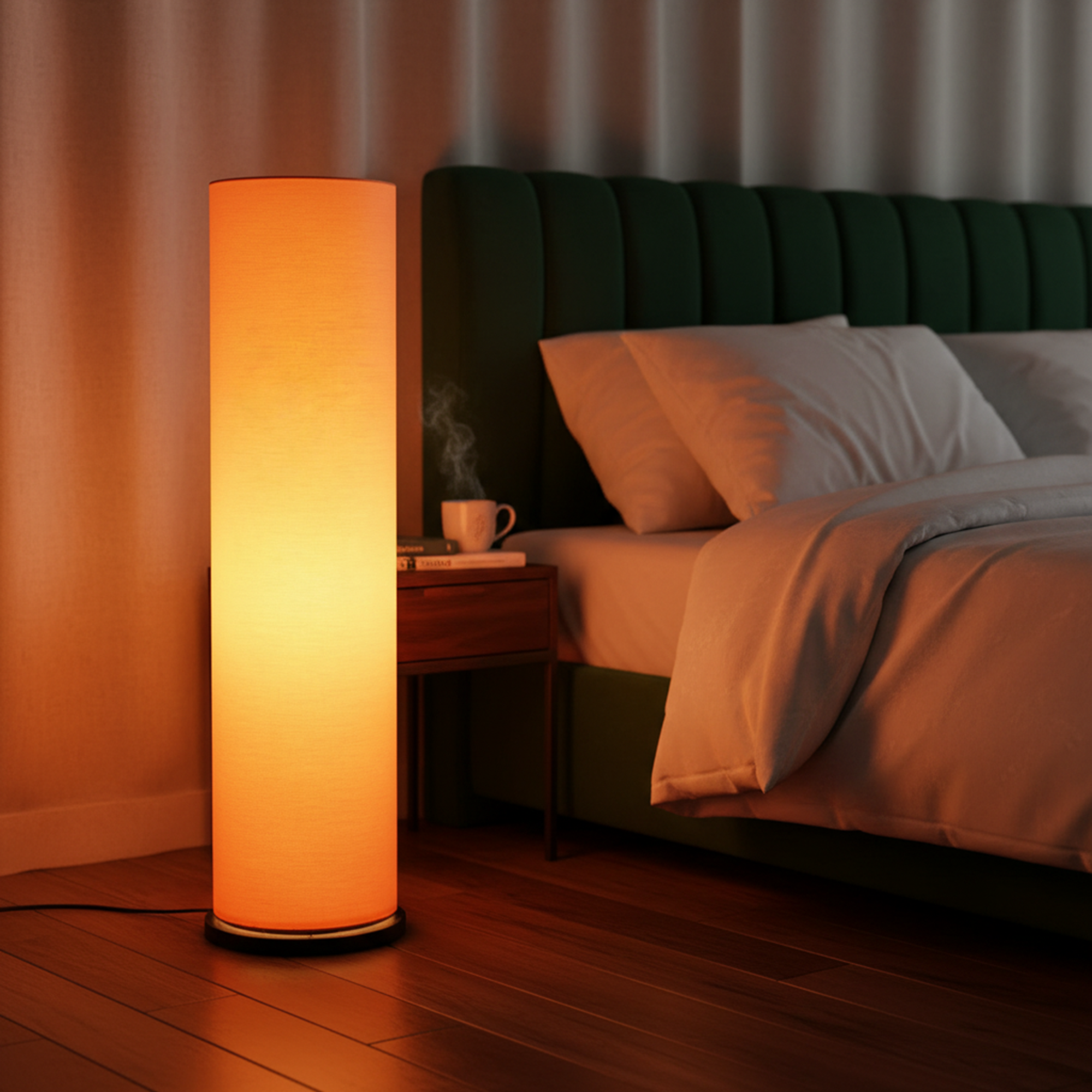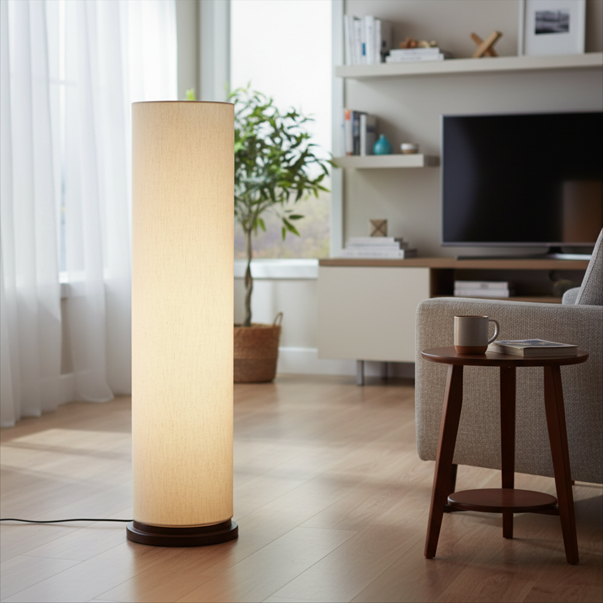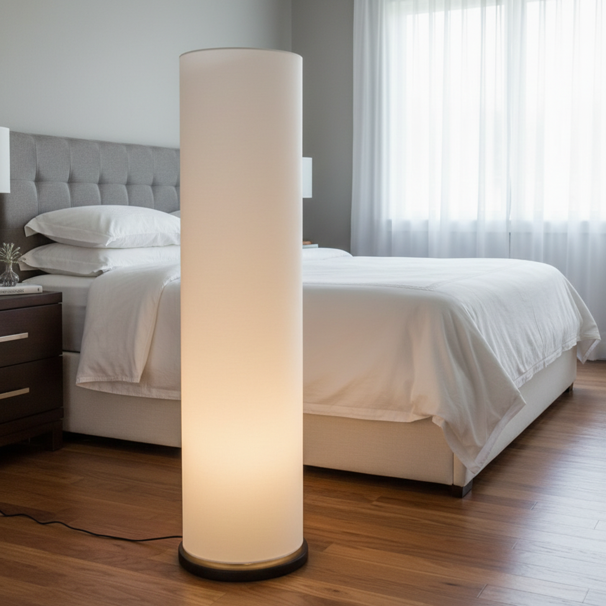 Enhance your interior décor with this elegant Modern Cylinder Floor Lamp, designed to bring warmth and sophistication to any space. Featuring a sleek tall cylindrical fabric shade and a sturdy wooden base, this standing lamp creates soft, diffused ambient lighting perfect for relaxing evenings or stylish interiors.