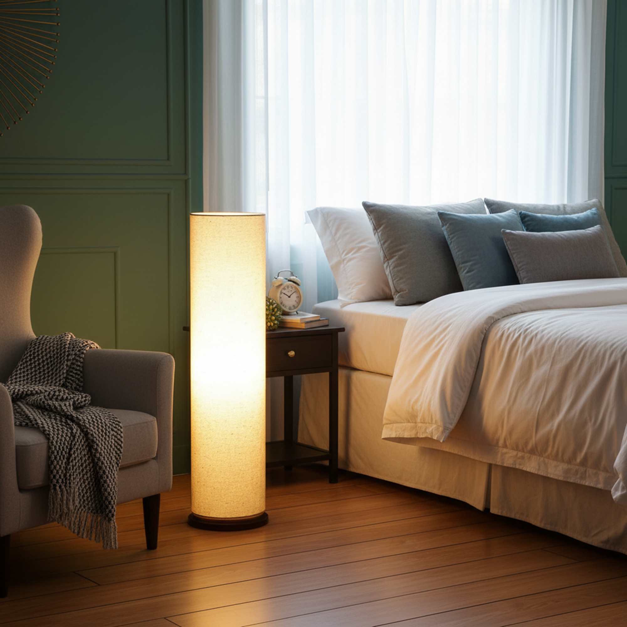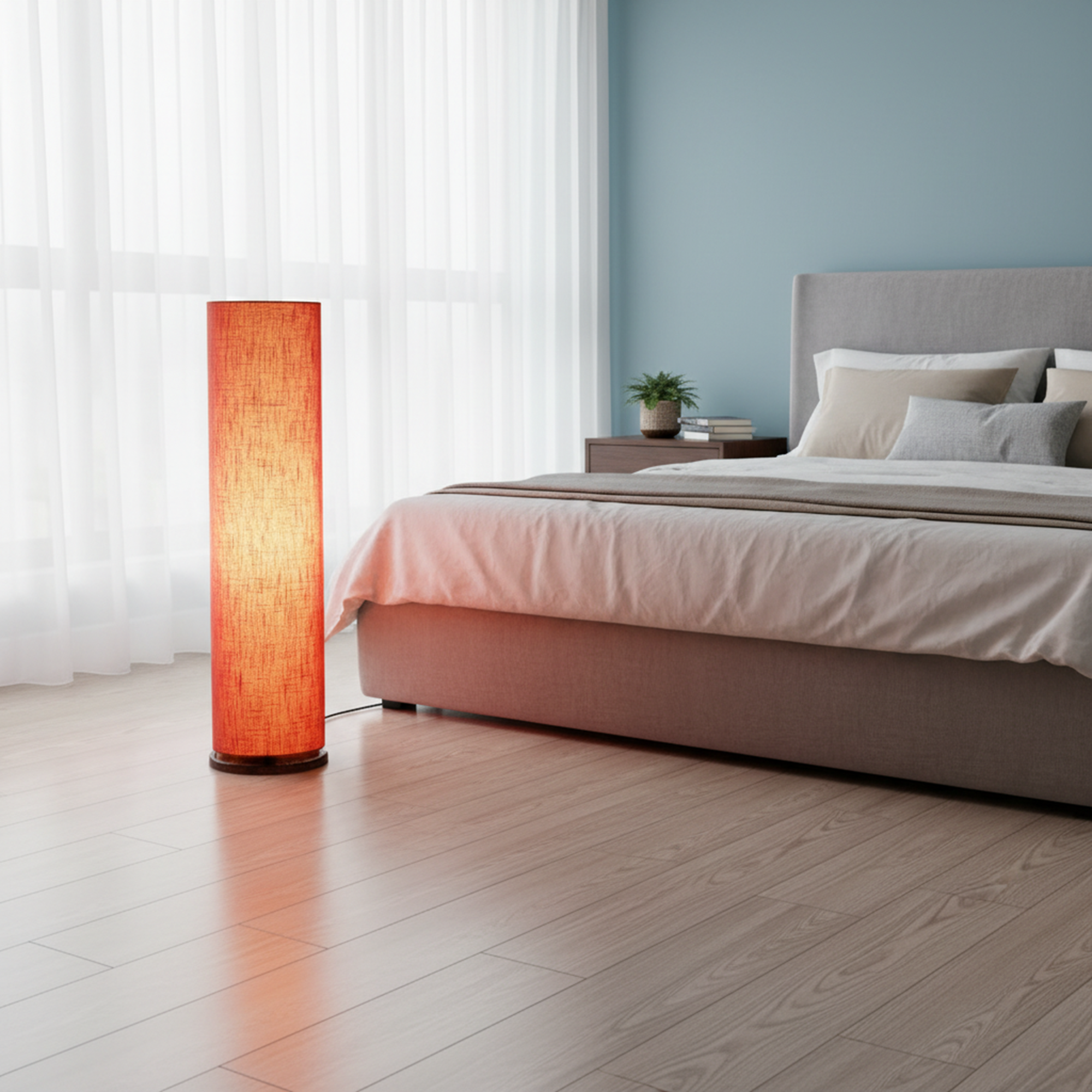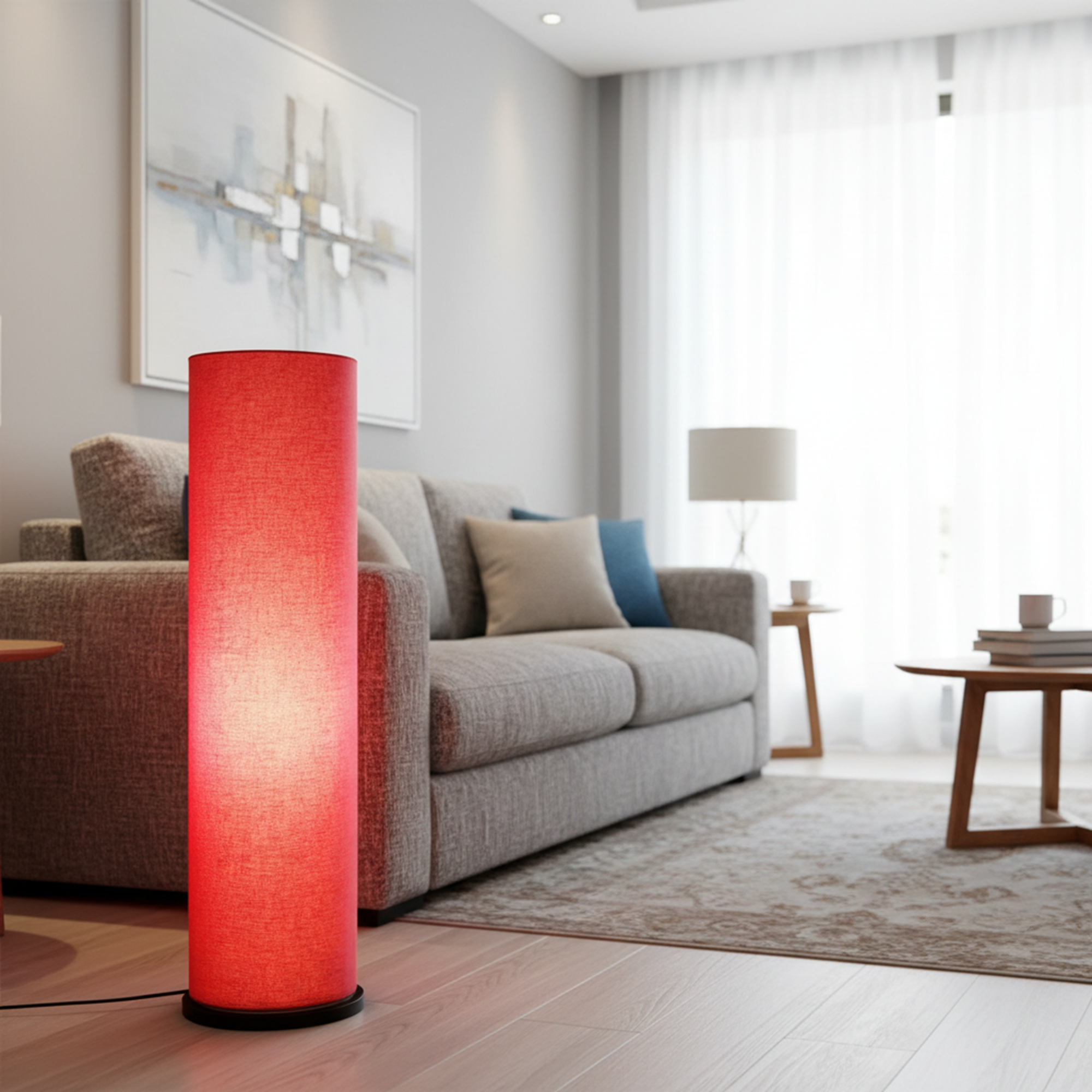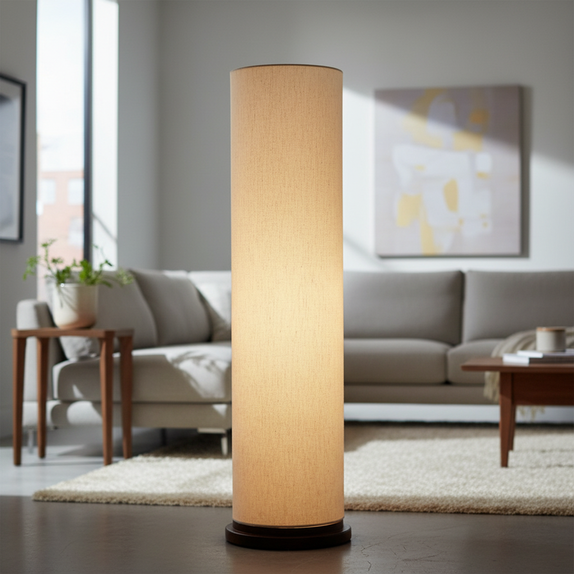 Enhance your interior décor with this elegant Modern Cylinder Floor Lamp, designed to bring warmth and sophistication to any space. Featuring a sleek tall cylindrical fabric shade and a sturdy wooden base, this standing lamp creates soft, diffused ambient lighting perfect for relaxing evenings or stylish interiors.