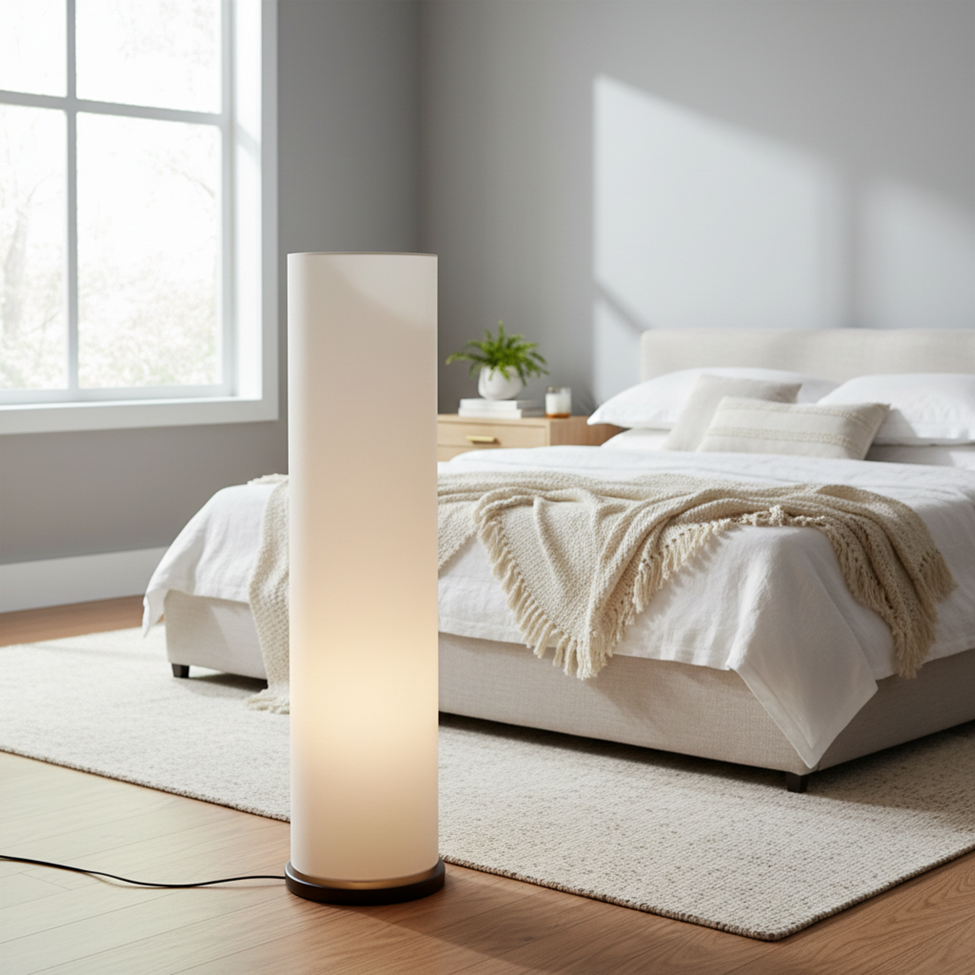 Its minimalist design blends effortlessly with modern, contemporary, Scandinavian, and hotel-style décor themes. Ideal for living rooms, bedrooms, offices, reading corners, hotel lobbies, and reception areas, this floor lamp adds height, texture, and a cozy atmosphere to your space.
