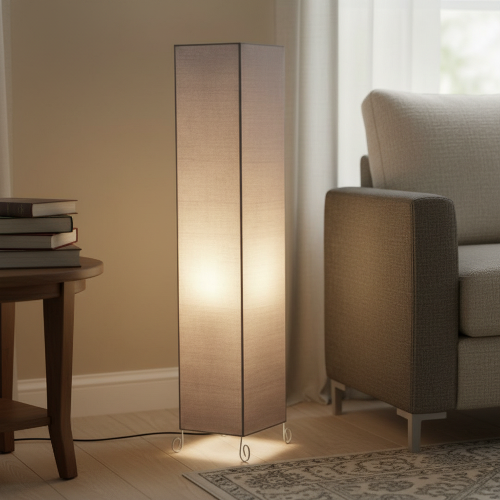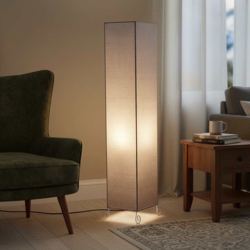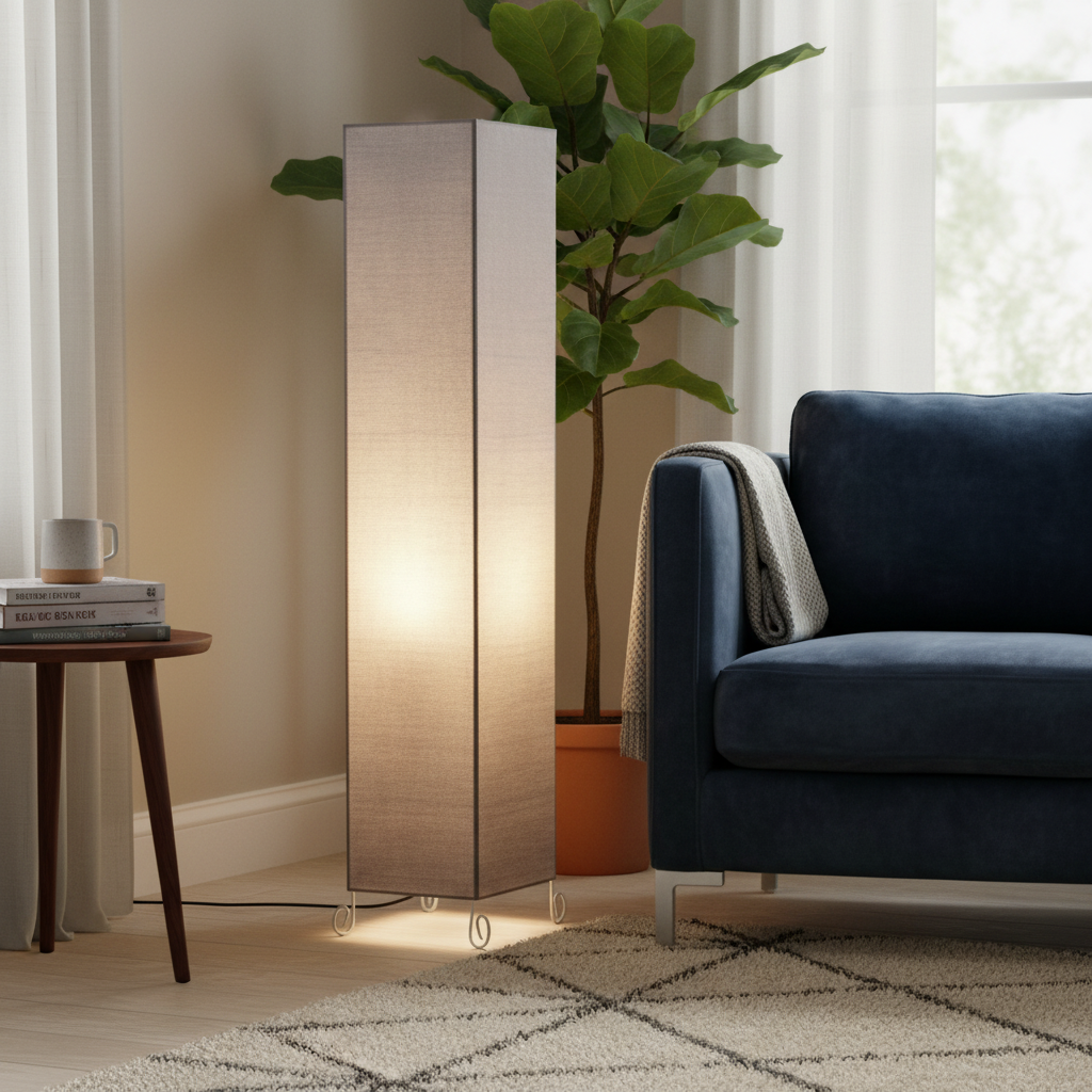 Upgrade your home décor with this Modern Square Floor Lamp, designed to create a warm and inviting atmosphere in any space. Featuring a sleek vertical tower structure with premium fabric shade and elegant metal legs, this lamp delivers soft, diffused lighting perfect for relaxing evenings or stylish interiors.
