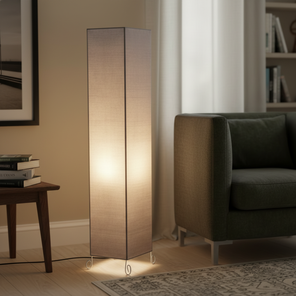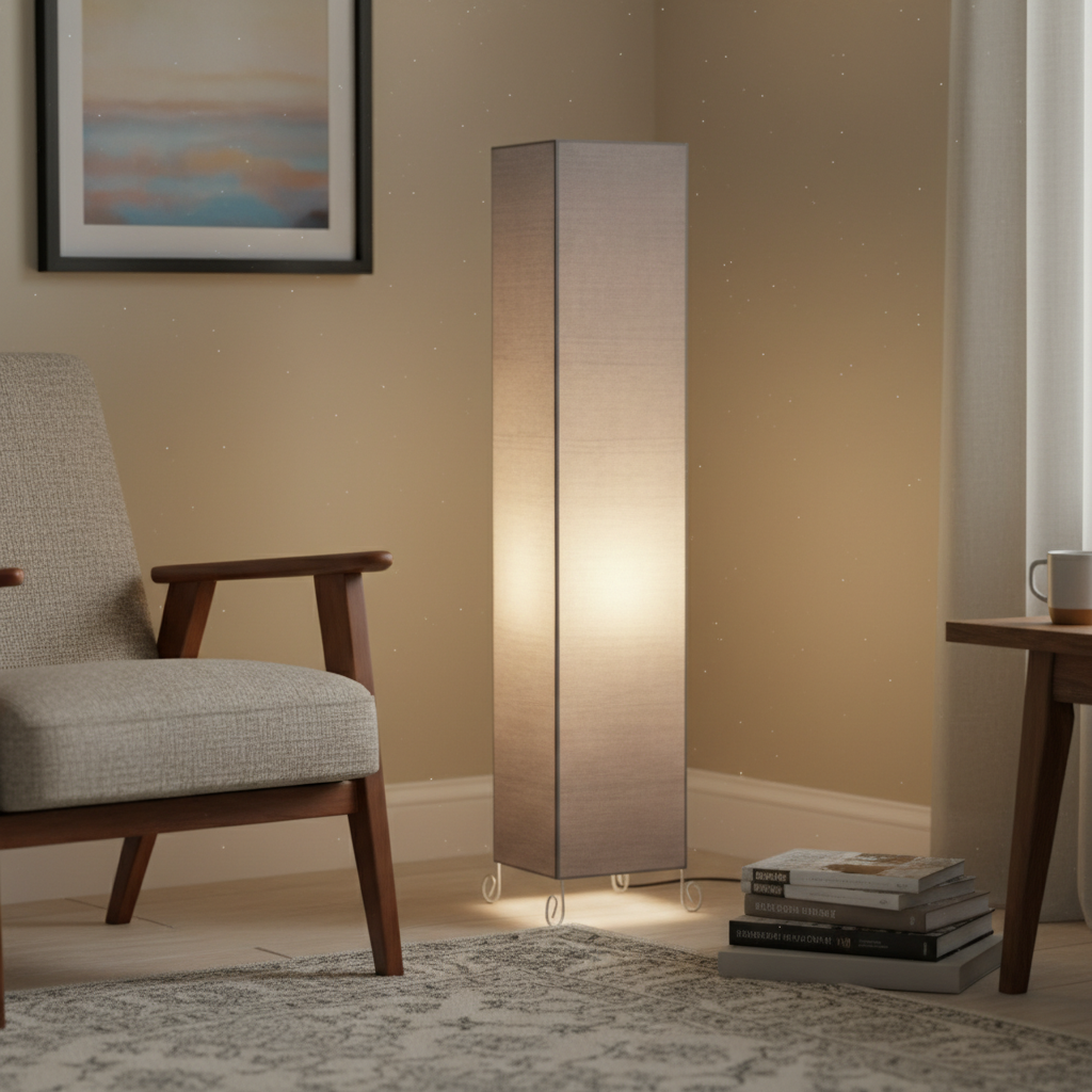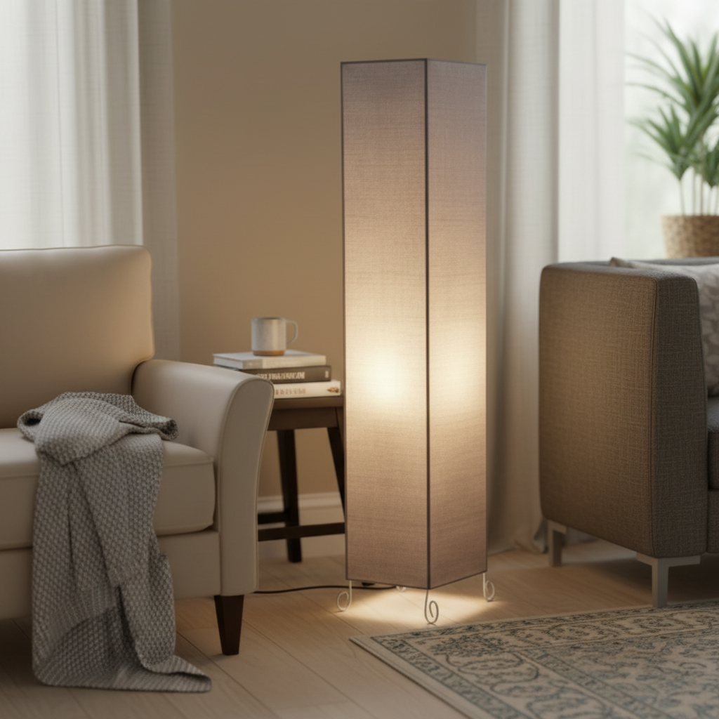 Upgrade your home décor with this Modern Square Floor Lamp, designed to create a warm and inviting atmosphere in any space. Featuring a sleek vertical tower structure with premium fabric shade and elegant metal legs, this lamp delivers soft, diffused lighting perfect for relaxing evenings or stylish interiors.
