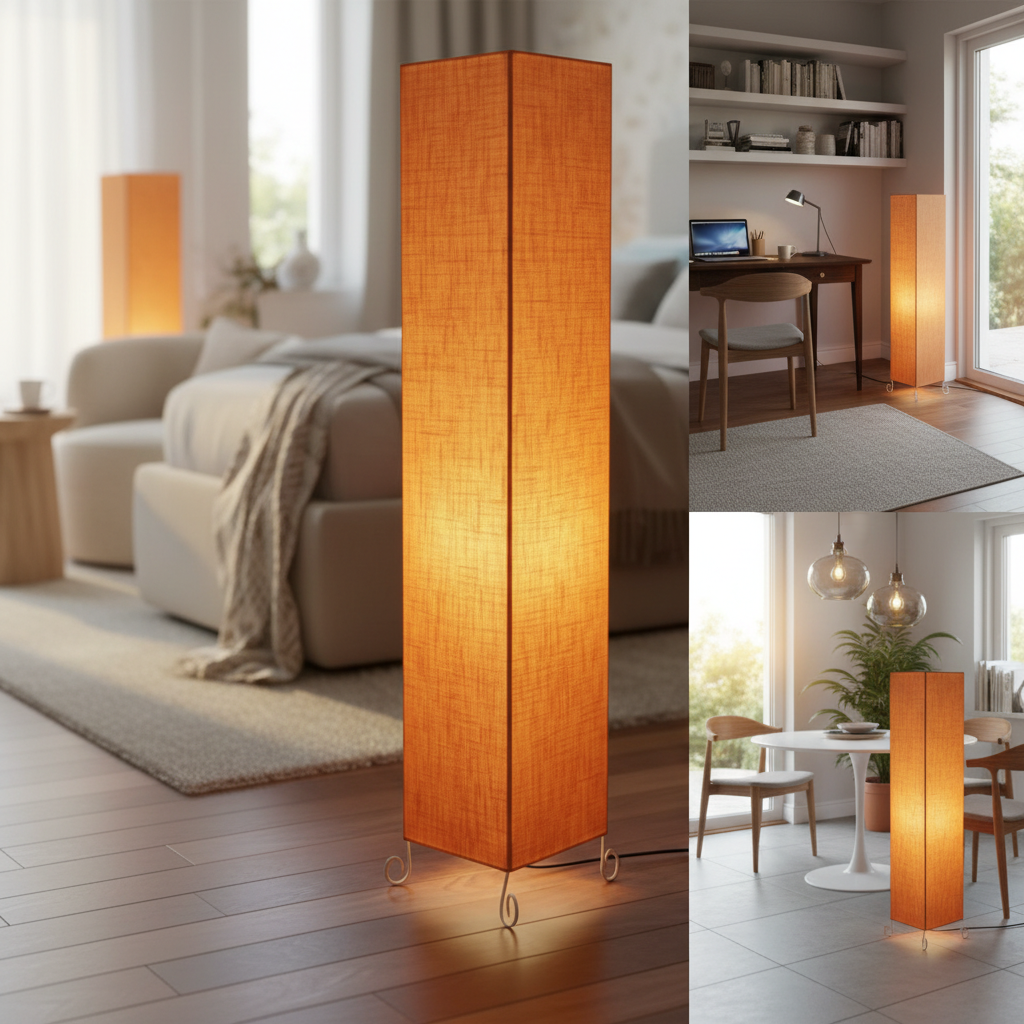 Upgrade your home décor with this Modern Square Floor Lamp, designed to create a warm and inviting atmosphere in any space. Featuring a sleek vertical tower structure with premium fabric shade and elegant metal legs, this lamp delivers soft, diffused lighting perfect for relaxing evenings or stylish interiors.