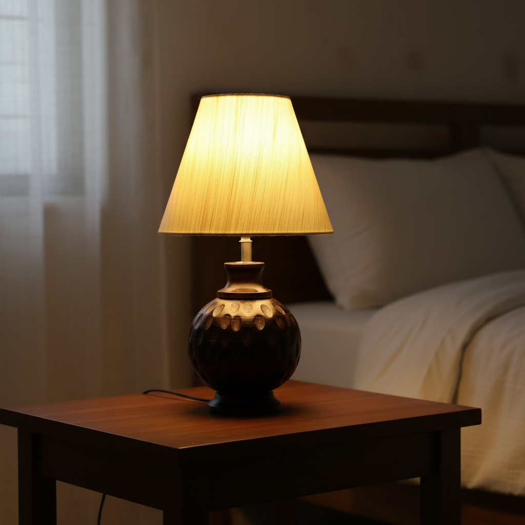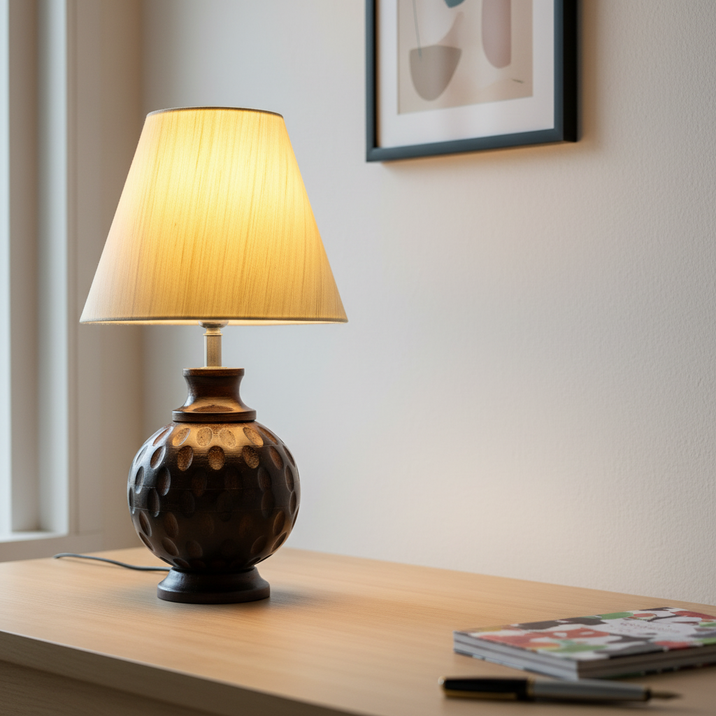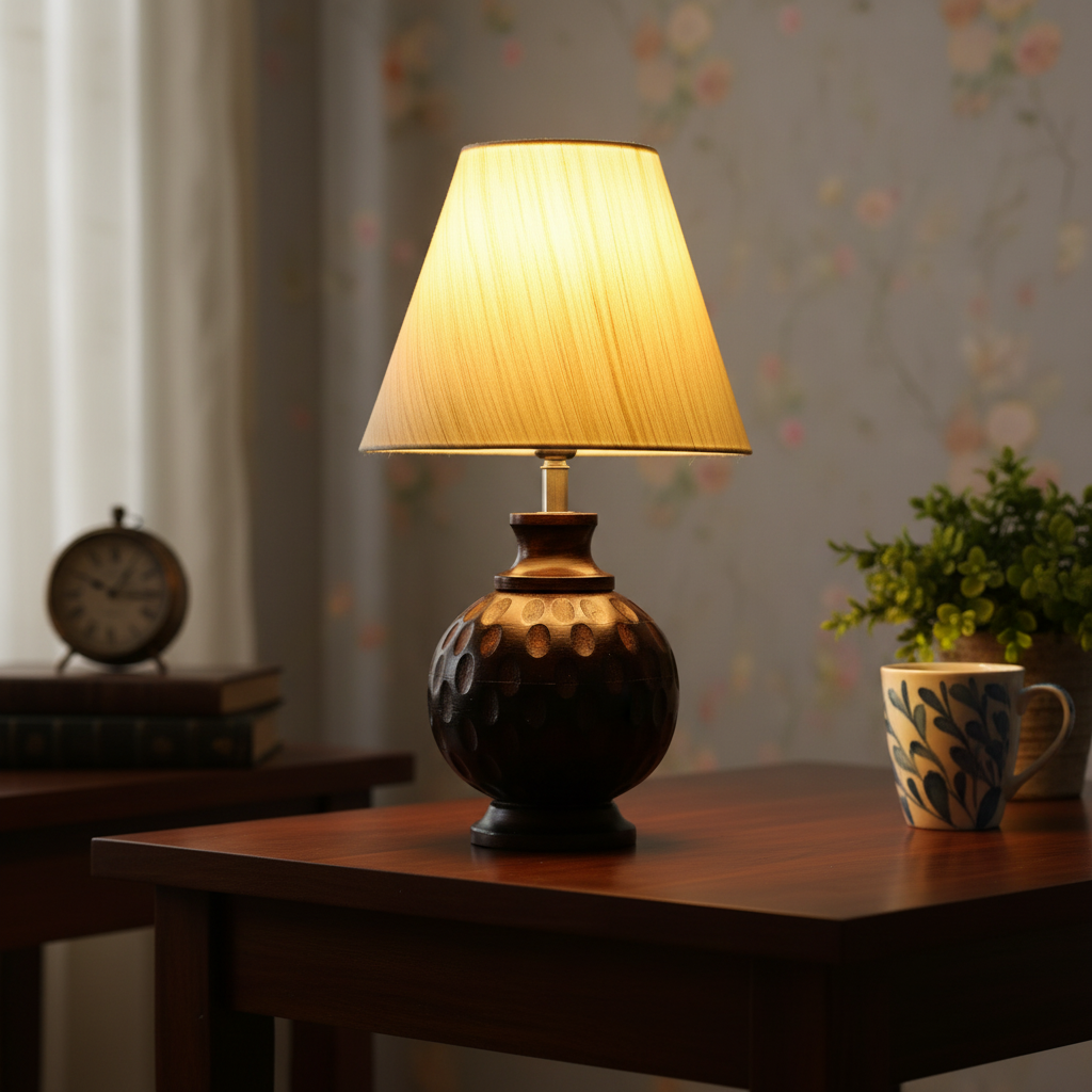 Bring warmth and elegance into your space with our Wood Matki Table Lamp. Handcrafted from premium natural wood, this lamp features a classic Matki (pot-shaped) design that blends traditional charm with modern simplicity. Its smooth finish and organic texture make it a versatile addition to any bedroom, office, or living room.Designed to create a cozy, ambient glow, this lamp is ideal for setting a relaxing mood while adding a touch of style to your decor. Whether you’re reading, working, or simply unwinding, the Natural Wood Matki Table Lamp provides both functionality and a timeless aesthetic.
