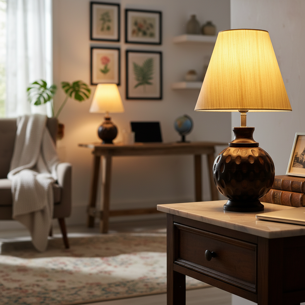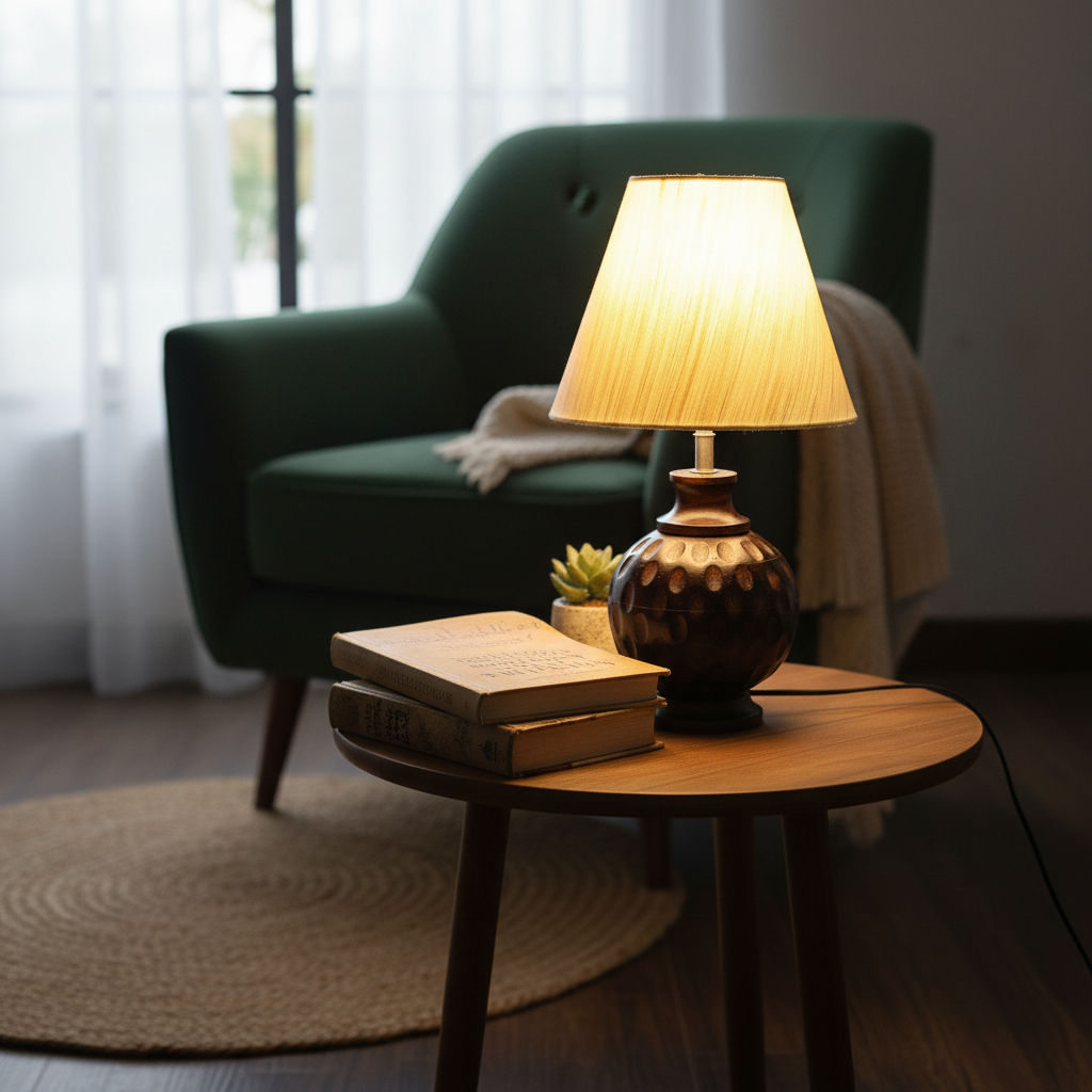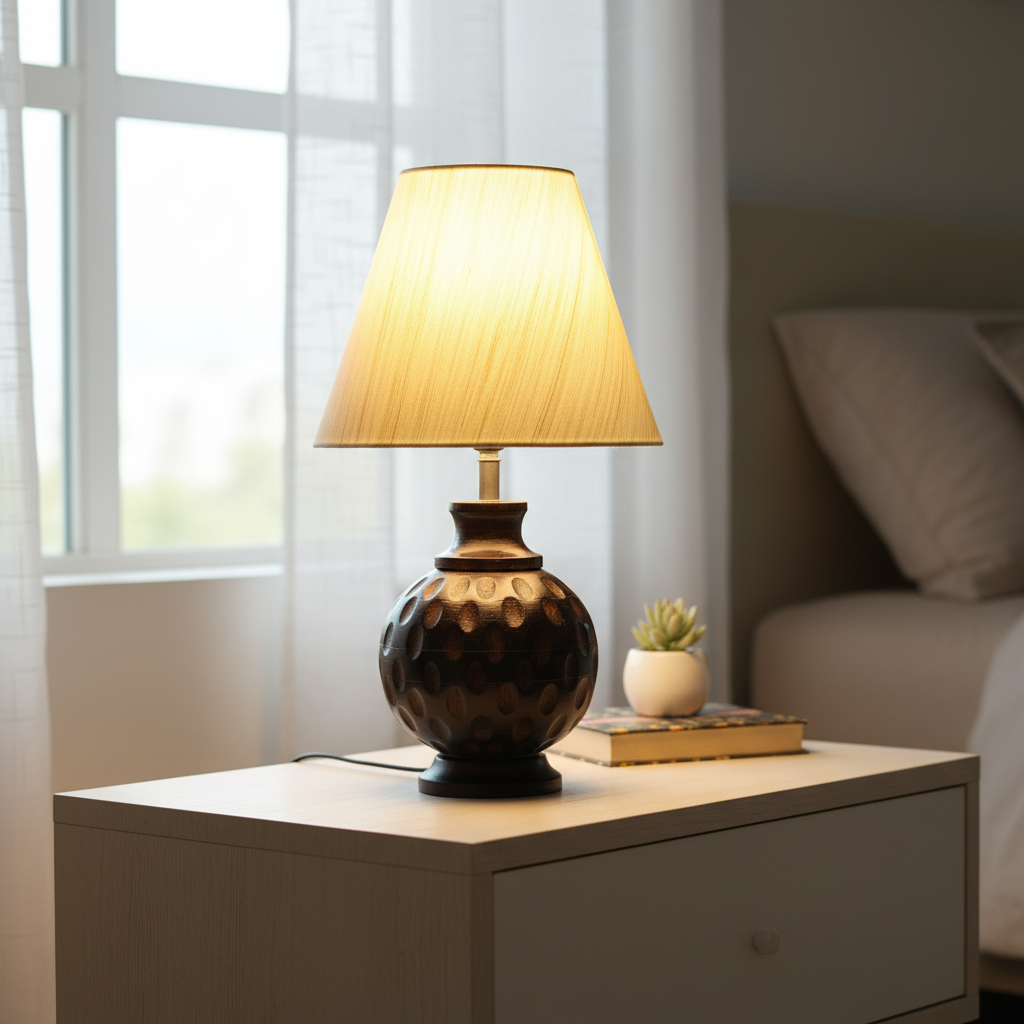 Bring warmth and elegance into your space with our Wood Matki Table Lamp. Handcrafted from premium natural wood, this lamp features a classic Matki (pot-shaped) design that blends traditional charm with modern simplicity. Its smooth finish and organic texture make it a versatile addition to any bedroom, office, or living room.Designed to create a cozy, ambient glow, this lamp is ideal for setting a relaxing mood while adding a touch of style to your decor. Whether you’re reading, working, or simply unwinding, the Natural Wood Matki Table Lamp provides both functionality and a timeless aesthetic.