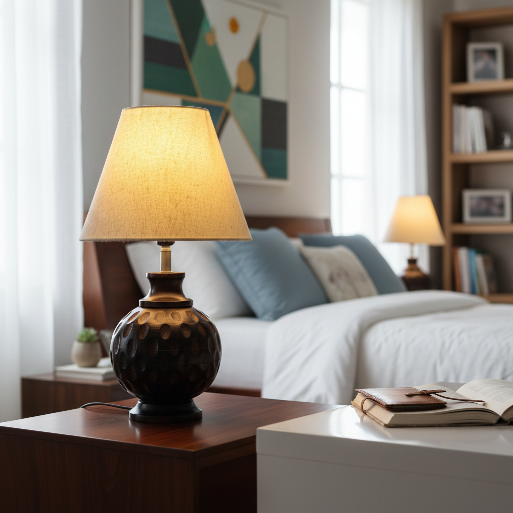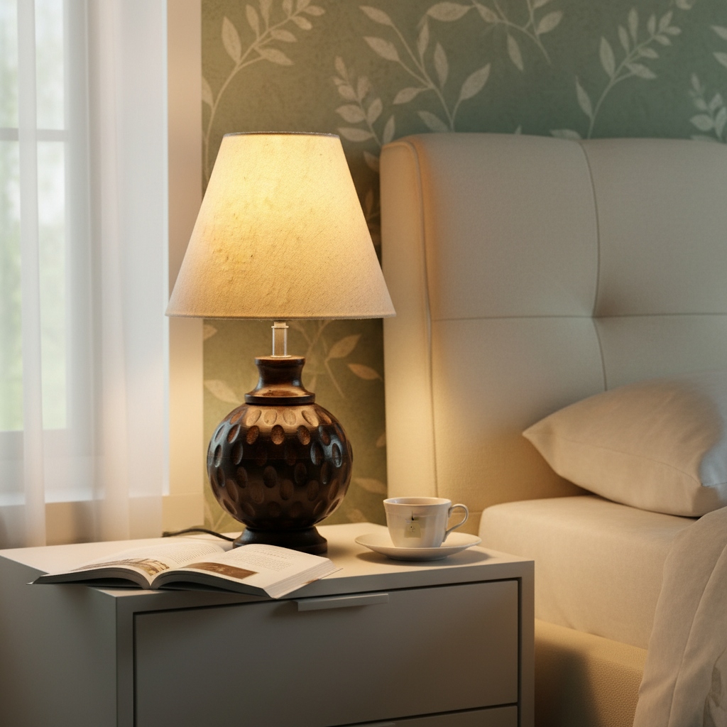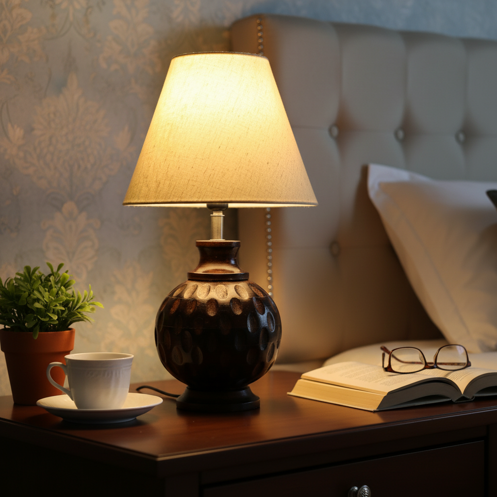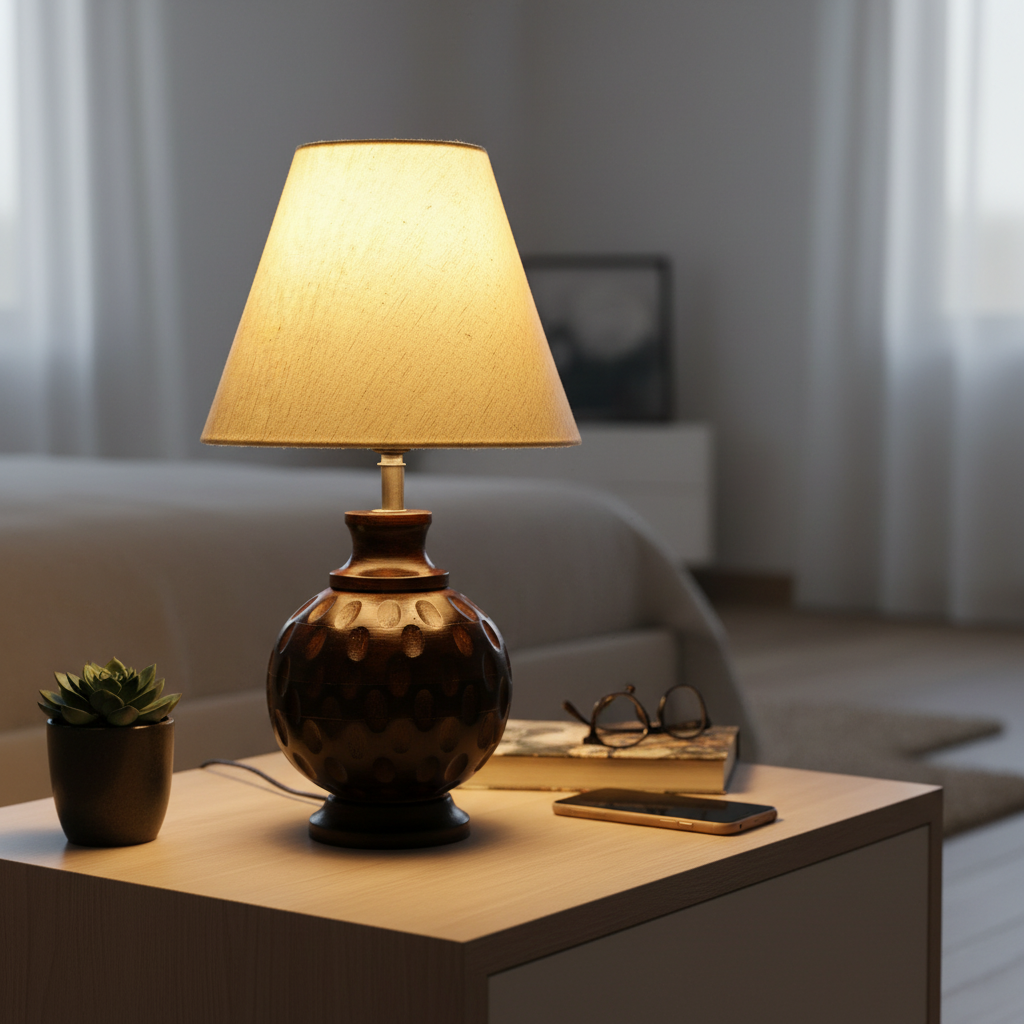 Be the first to review “Rustic Wooden Bedside Table Lamp with Linen Shade – Traditional Night Lamp for Home Décor, Pack Of 1(Flex)”