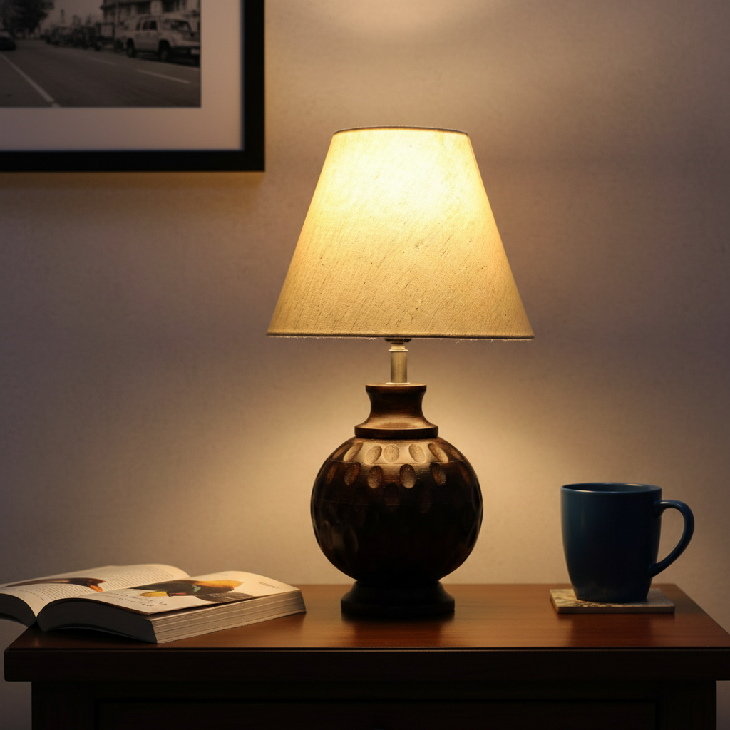 Bring warmth and elegance into your space with our Wood Matki Table Lamp. Handcrafted from premium natural wood, this lamp features a classic Matki (pot-shaped) design that blends traditional charm with modern simplicity. Its smooth finish and organic texture make it a versatile addition to any bedroom, office, or living room.Designed to create a cozy, ambient glow, this lamp is ideal for setting a relaxing mood while adding a touch of style to your decor. Whether you’re reading, working, or simply unwinding, the Natural Wood Matki Table Lamp provides both functionality and a timeless aesthetic.