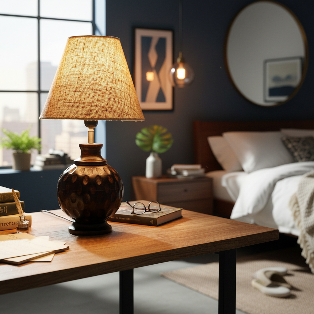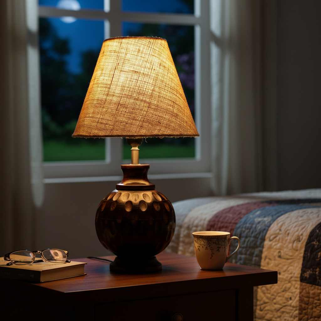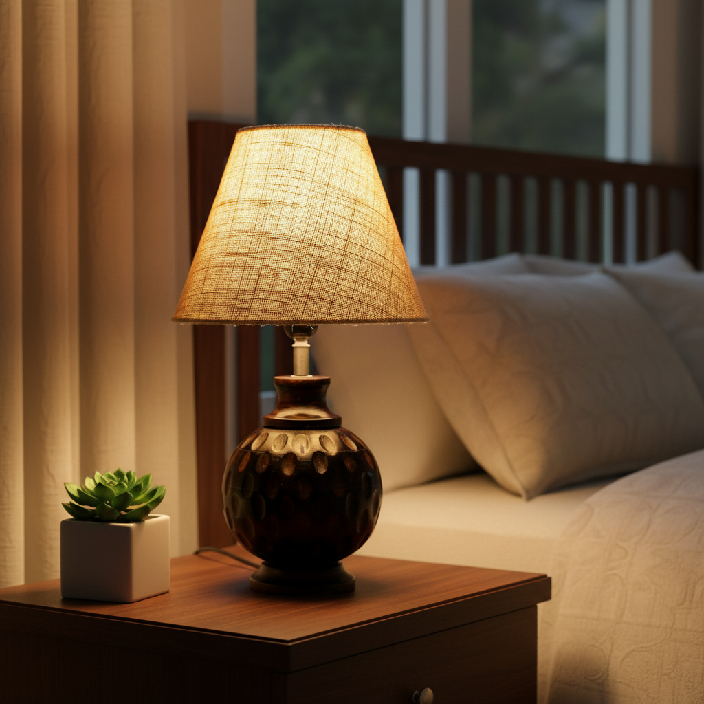 Bring warmth and elegance into your space with our Wood Matki Table Lamp. Handcrafted from premium natural wood, this lamp features a classic Matki (pot-shaped) design that blends traditional charm with modern simplicity. Its smooth finish and organic texture make it a versatile addition to any bedroom, office, or living room.Designed to create a cozy, ambient glow, this lamp is ideal for setting a relaxing mood while adding a touch of style to your decor. Whether you’re reading, working, or simply unwinding, the Natural Wood Matki Table Lamp provides both functionality and a timeless aesthetic.