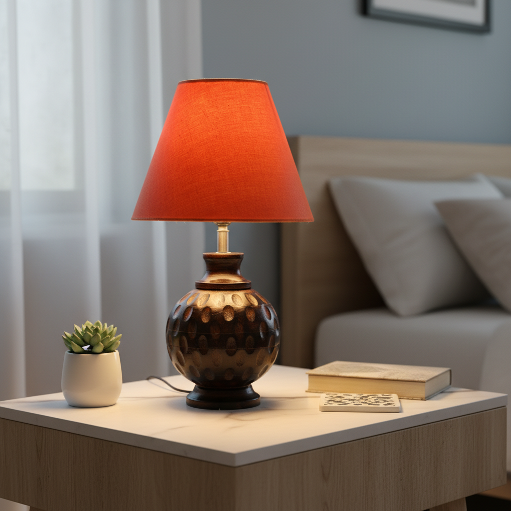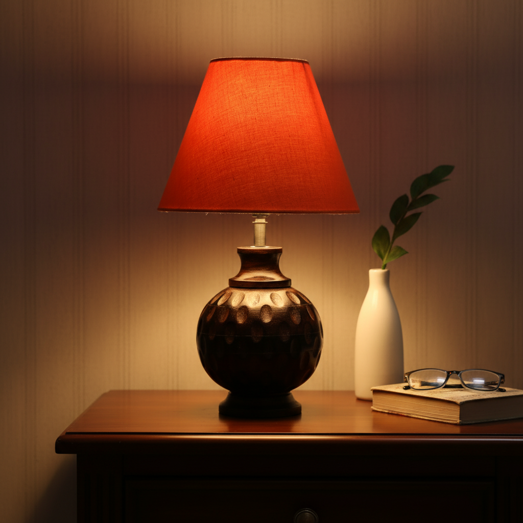Bring warmth and elegance into your space with our Wood Matki Table Lamp. Handcrafted from premium natural wood, this lamp features a classic Matki (pot-shaped) design that blends traditional charm with modern simplicity. Its smooth finish and organic texture make it a versatile addition to any bedroom, office, or living room.Designed to create a cozy, ambient glow, this lamp is ideal for setting a relaxing mood while adding a touch of style to your decor. Whether you’re reading, working, or simply unwinding, the Natural Wood Matki Table Lamp provides both functionality and a timeless aesthetic.